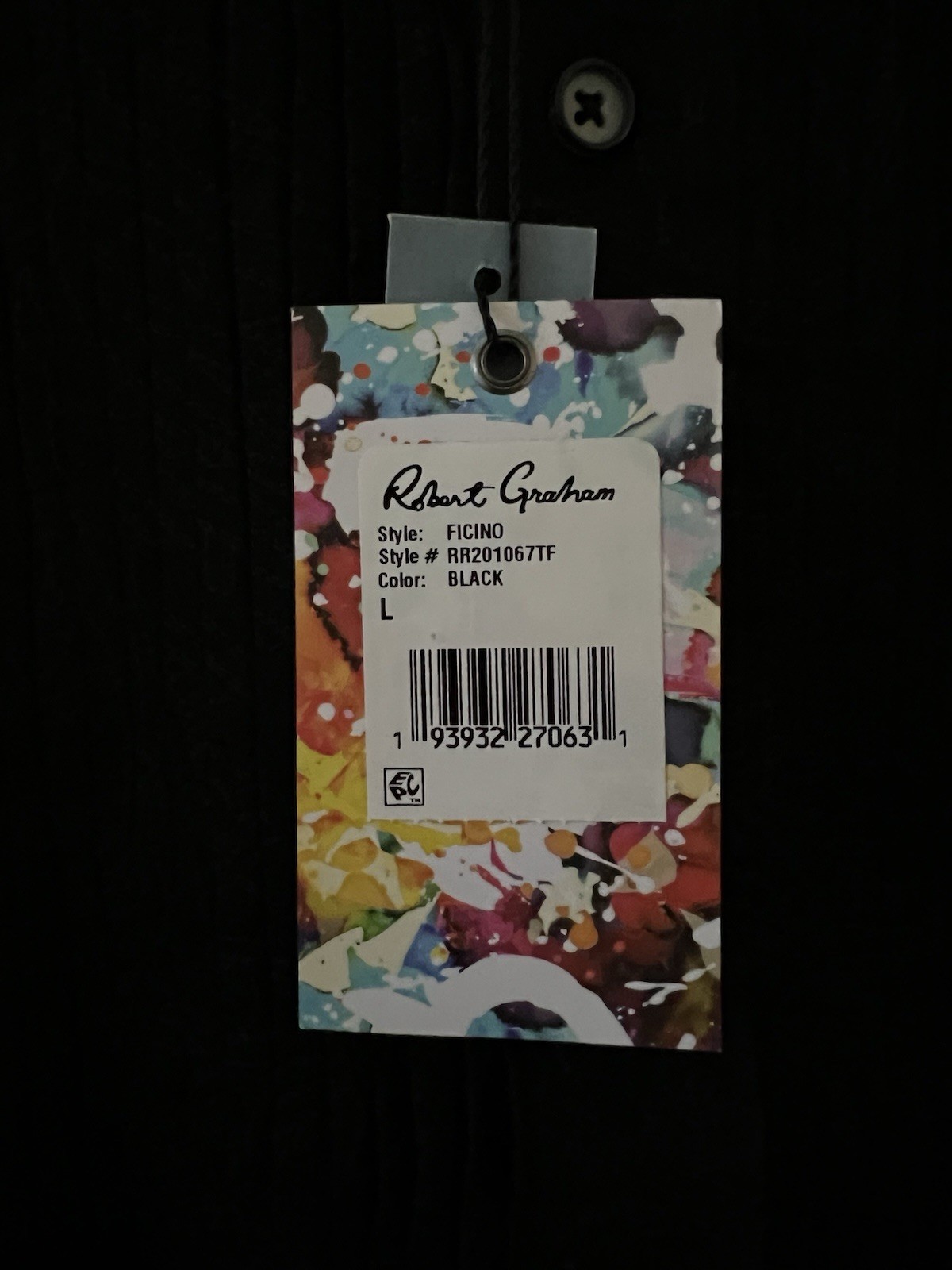 как выглядит NWT Robert Graham FICINO Black Embroidered Dress Shirt-LARGE фото