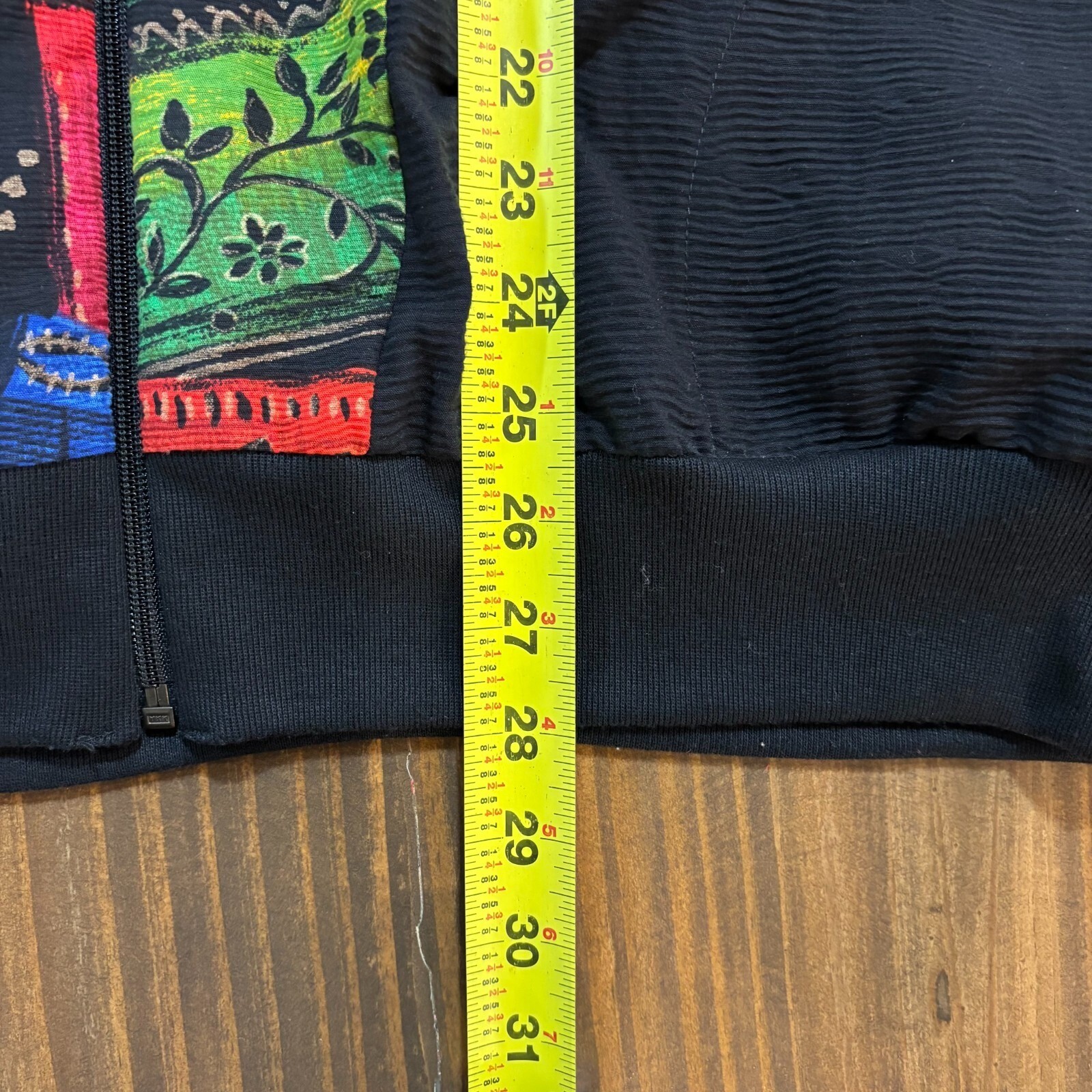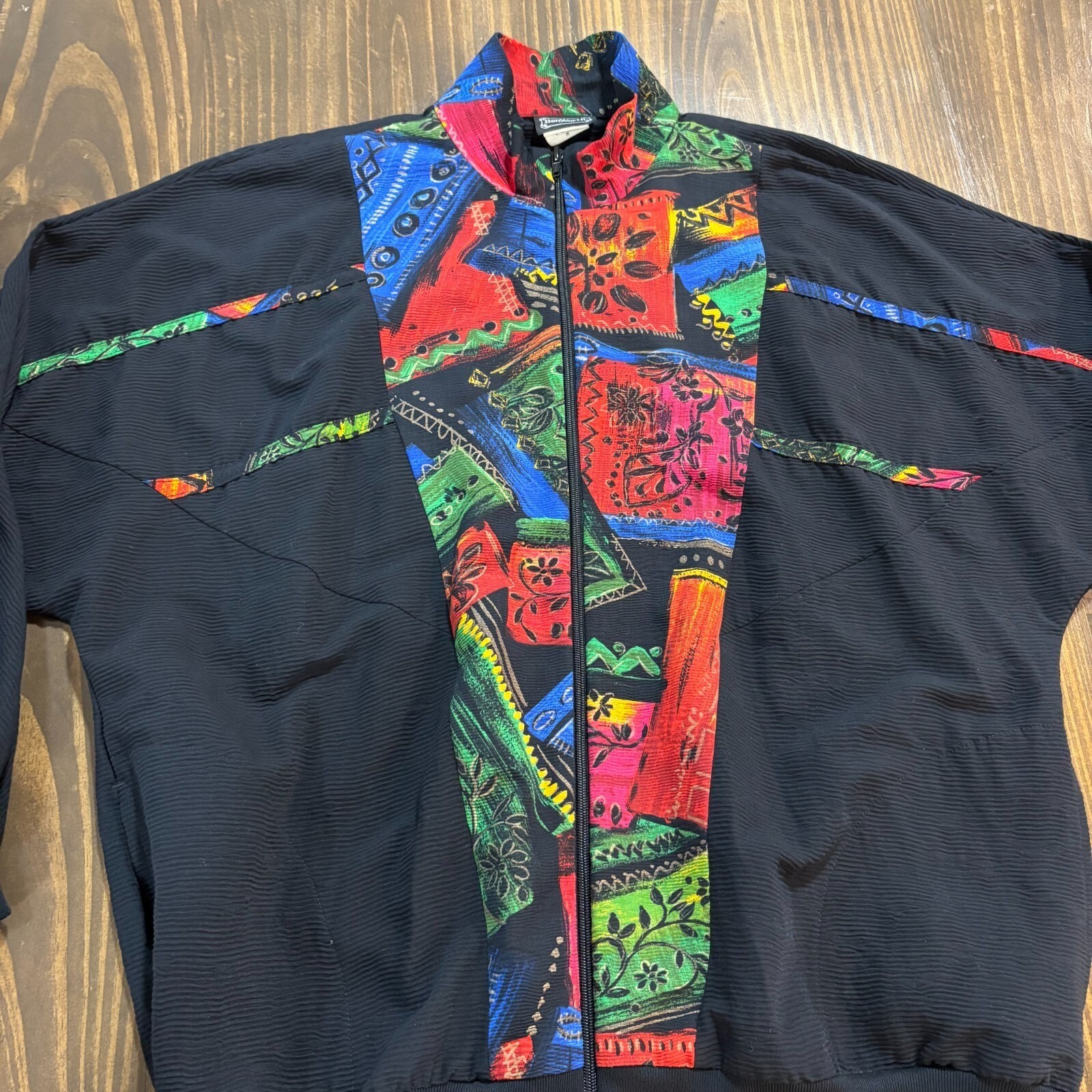 Vintage BonWorth Zip Up Jacket Black Abstract Multi Color Textured Knit USA M