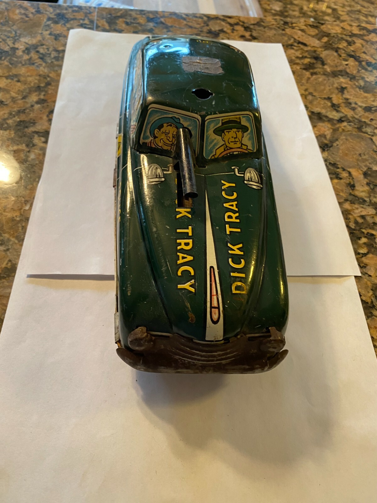 VINTAGE MARX PRESSED METAL LITHO DICK TRACY SQUAD FRICTION CAR N0 1 6 3/4 LONG