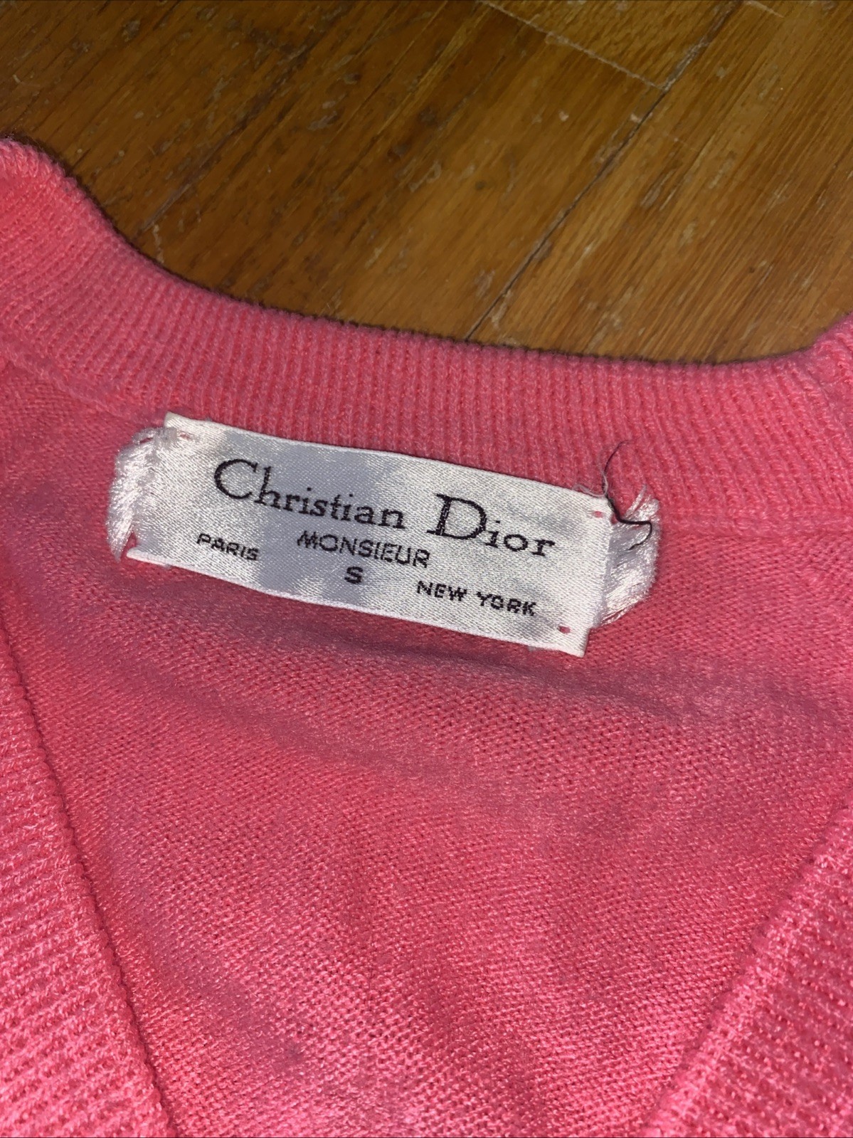 как выглядит Vintage Christian Dior MONSIEUR Unisex V-Neck Pink Sweater Easter Spring 80s фото