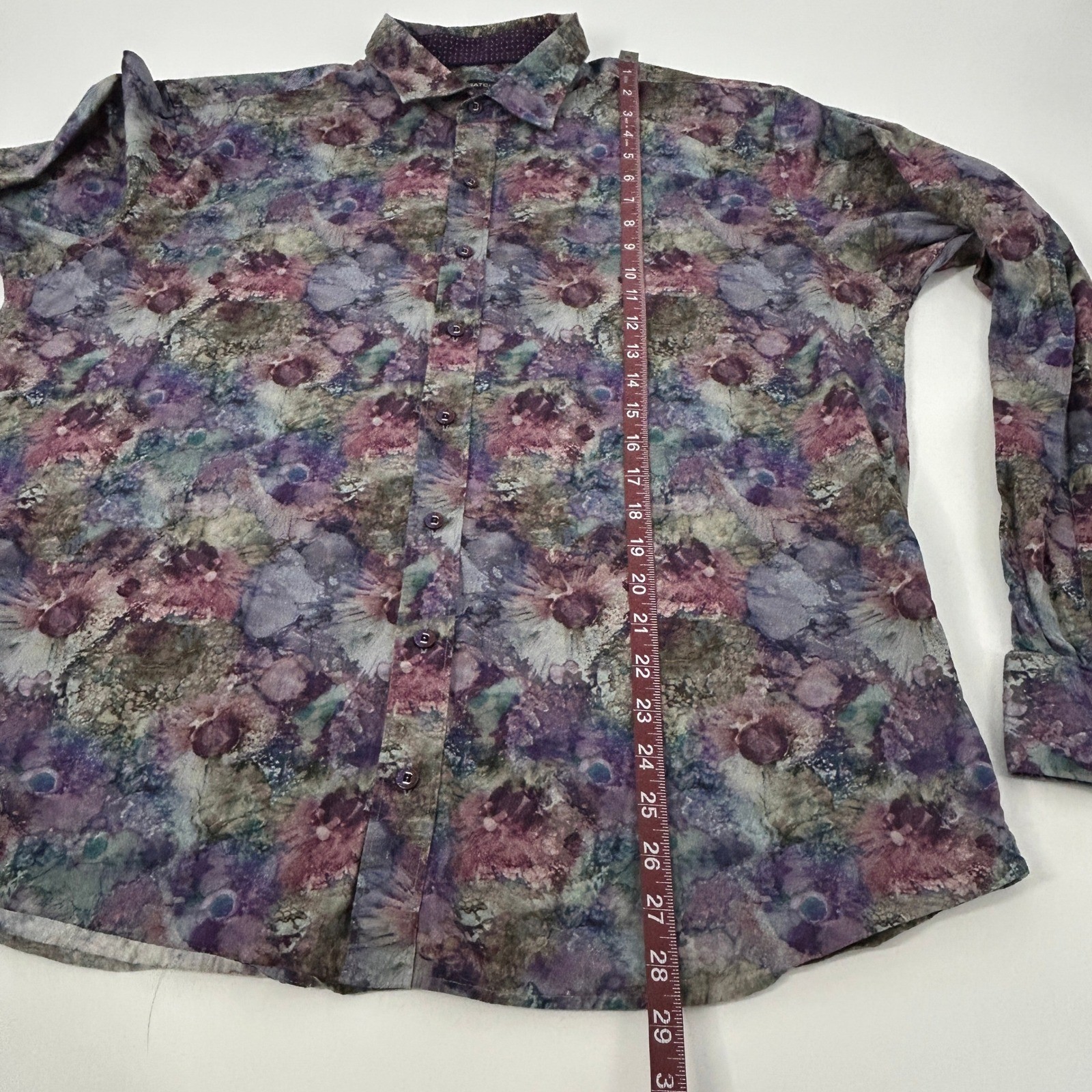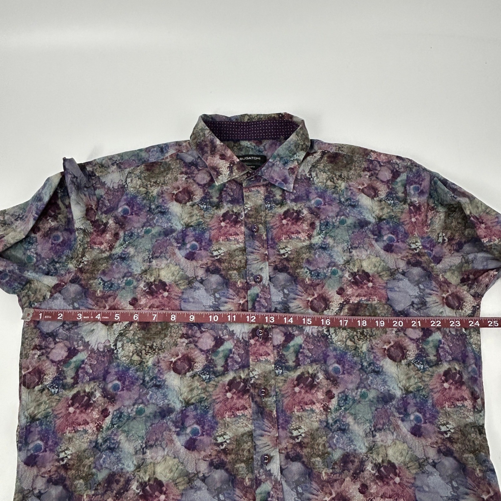 как выглядит BUGATCHI Shaped Fit Shirt Mens XXL Purple Floral Print Long Sleeve Button Up фото