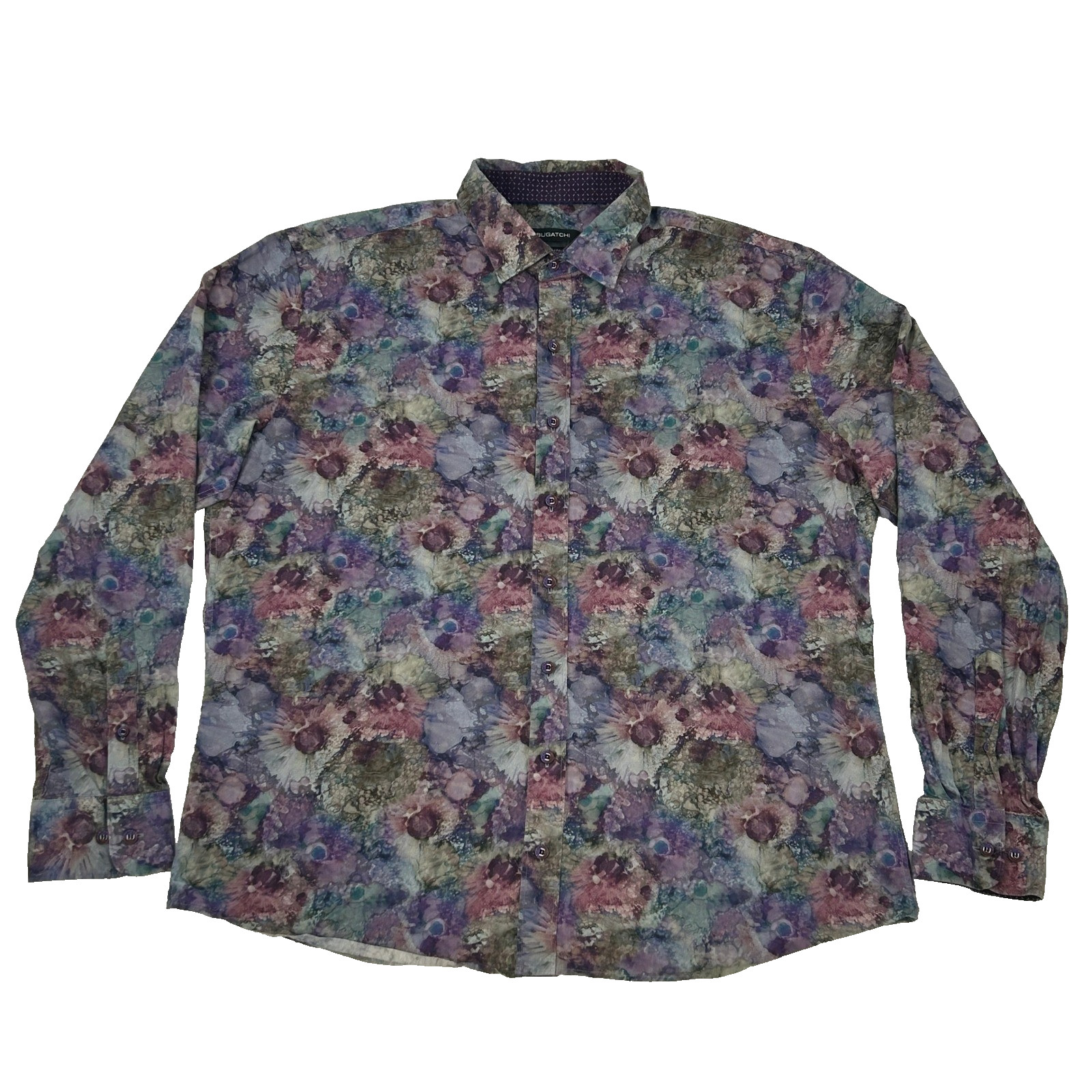 BUGATCHI Shaped Fit Shirt Men's XXL Purple Floral Print Long Sleeve Button Up