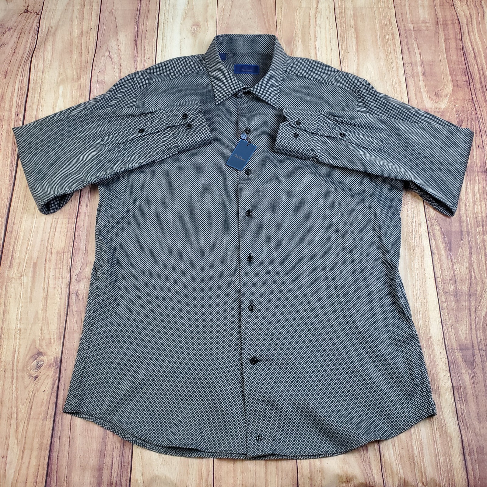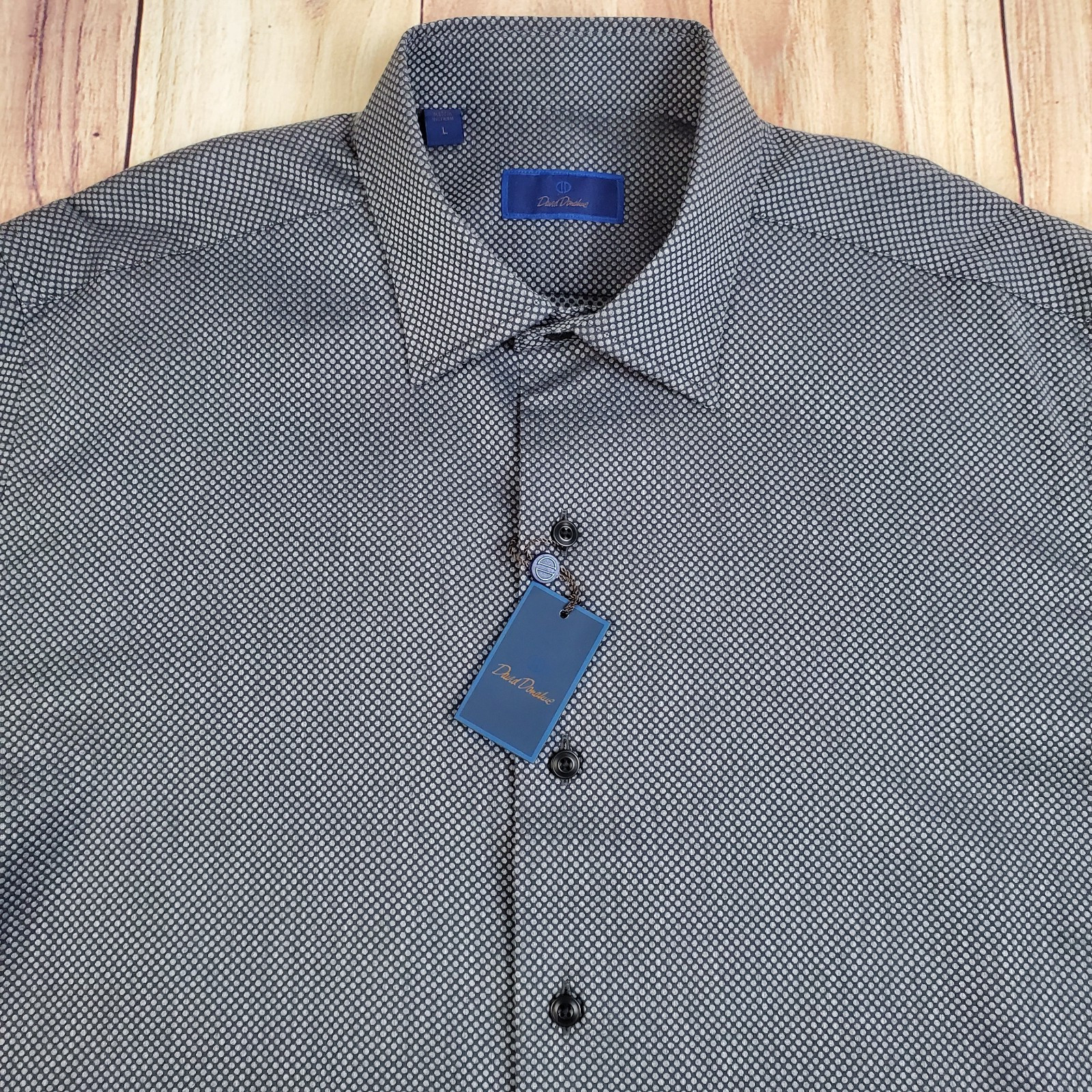 как выглядит David Donahue Mens L Shirt Charcoal Stretch Cotton Long Sleeve Button Front NWT фото