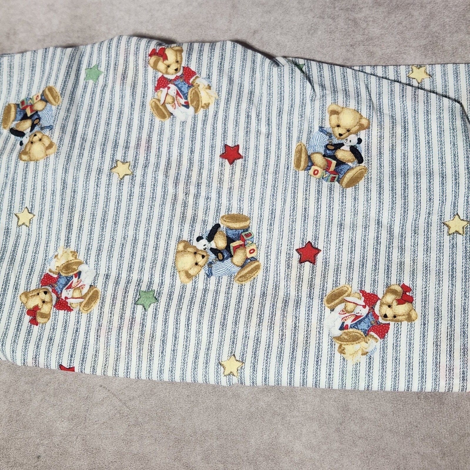 • 2 Pc Lot Vintage Springmaid Crib Sheets Teddy Bear Blue Jean Stripe Nursery