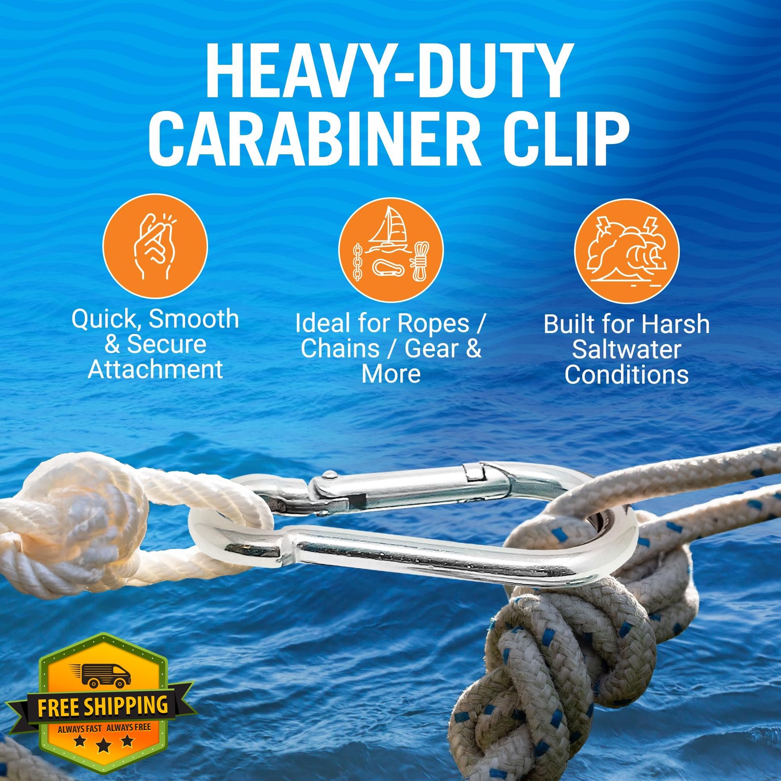 Stainless Steel Carabiner Clip 4pk 316 Marine Grade Hooks