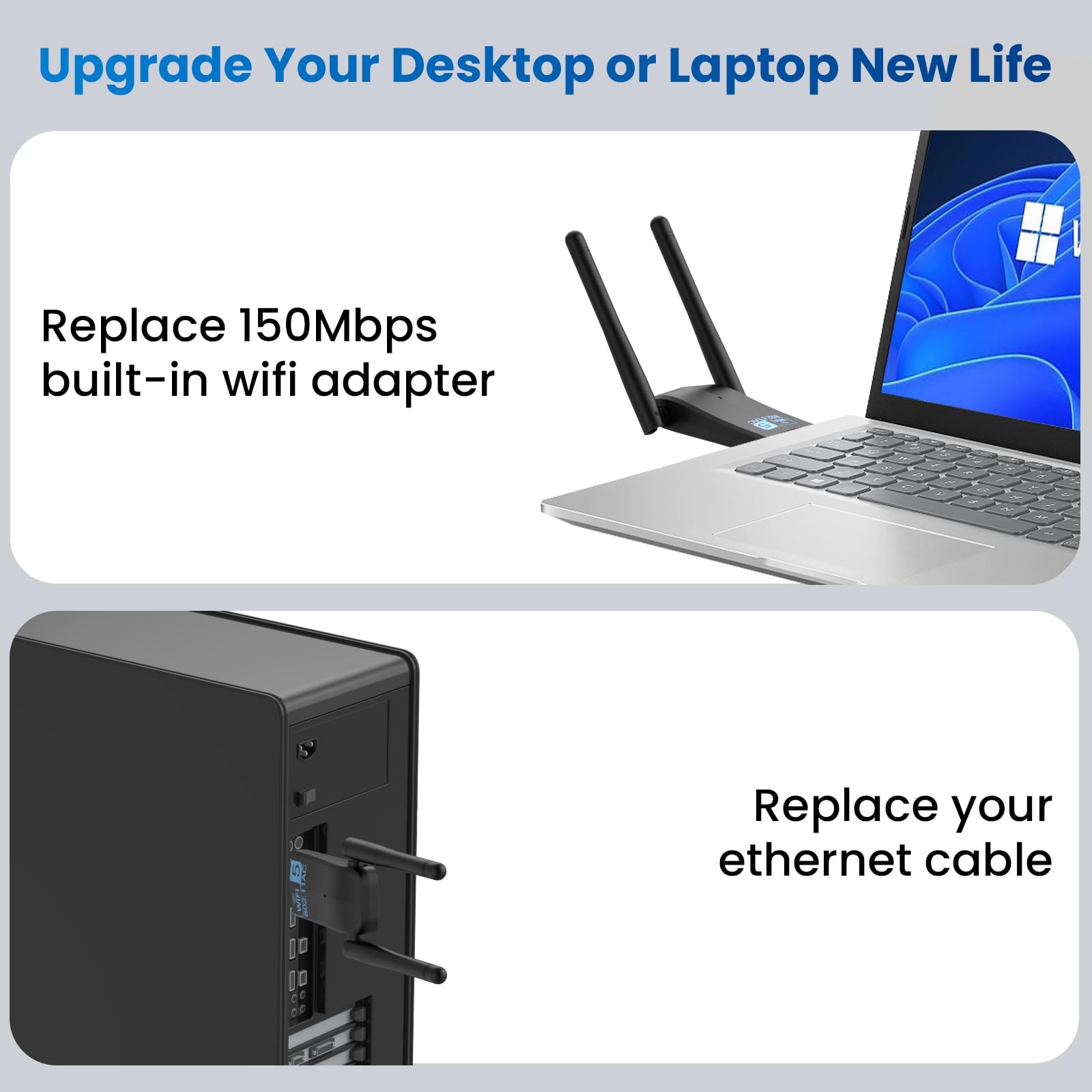 Wireless USB 3.0 WiFi Adapter for Desktop PC Laptop,5G 2.4G Dual-Band 1300Mbp...