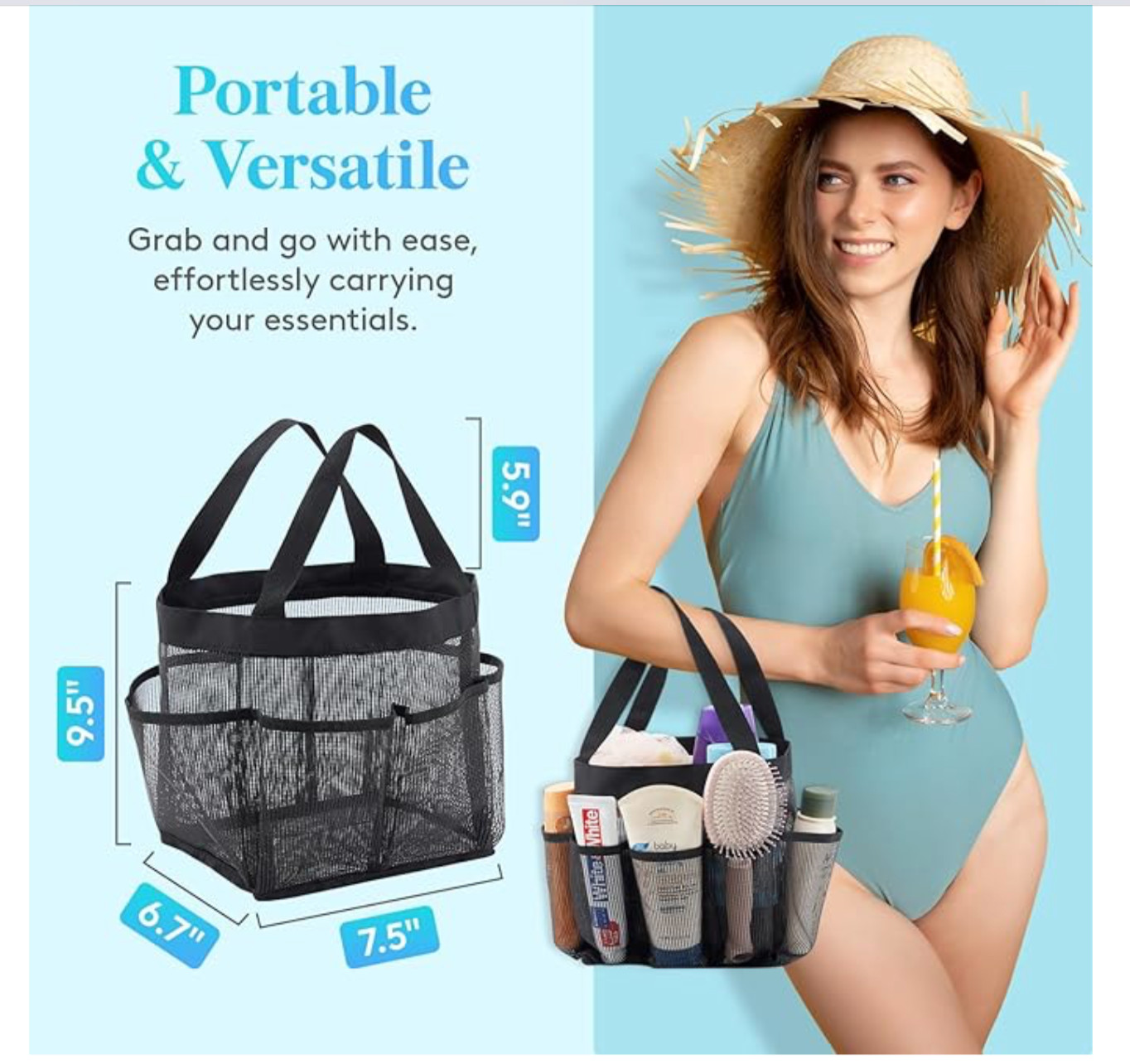 Mesh Shower Caddy Portable Pocket Quick Dry College Dorm Travel Tote Storage Bag