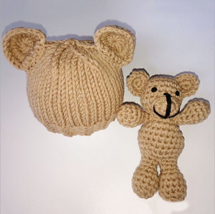 Newborn Baby Bear Hat Set Girl Boy Photography Prop Photo Crochet Knit Costume