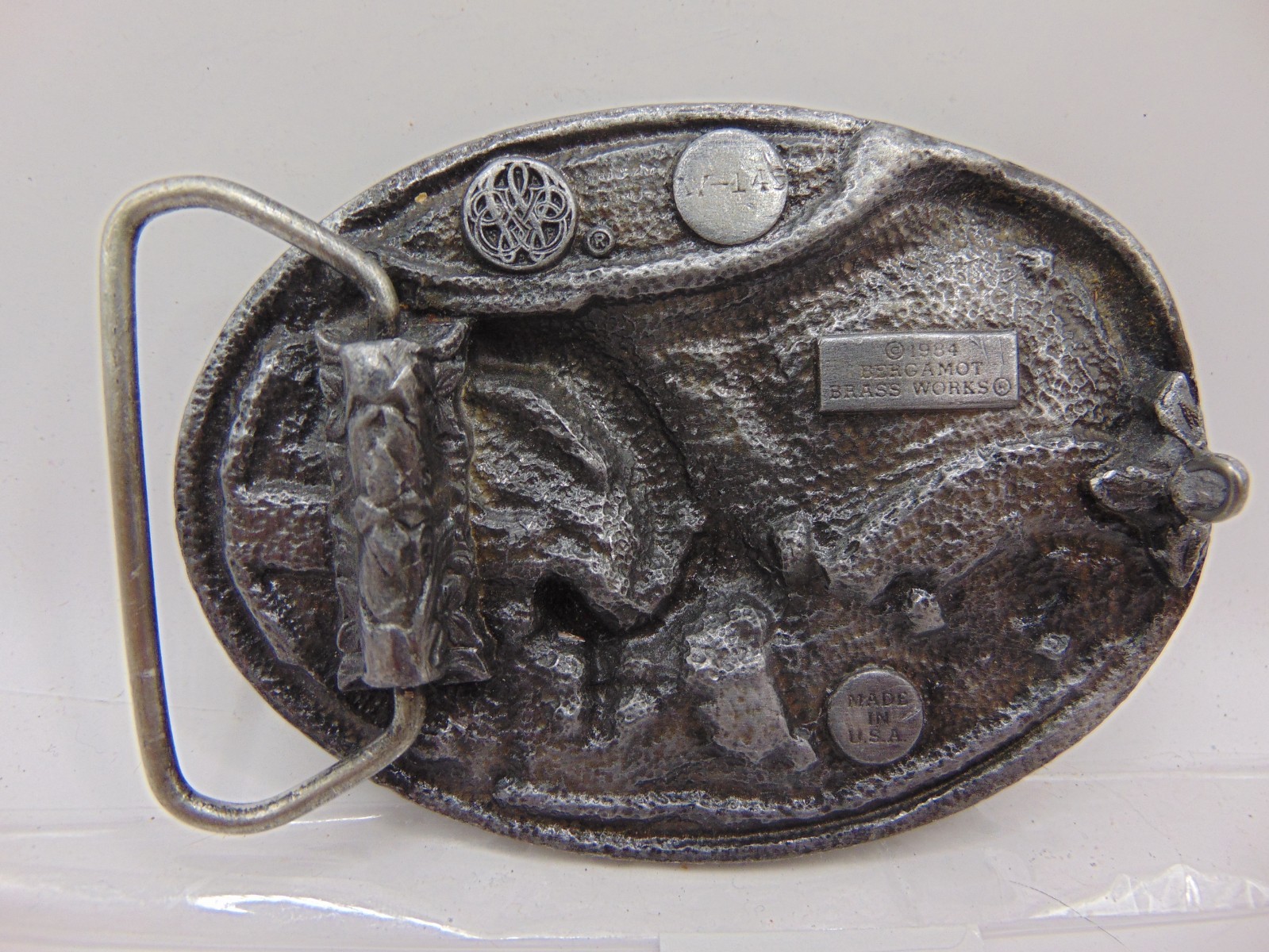 как выглядит Vintage Belt Buckle 1984 EAGLE in flight Bergamot Brass Works pewter USA Made фото