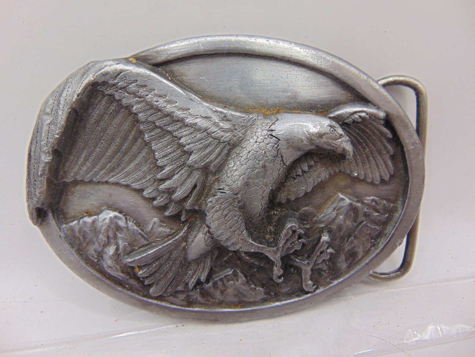 • Vintage Belt Buckle 1984 EAGLE in flight Bergamot Brass Works pewter USA Made