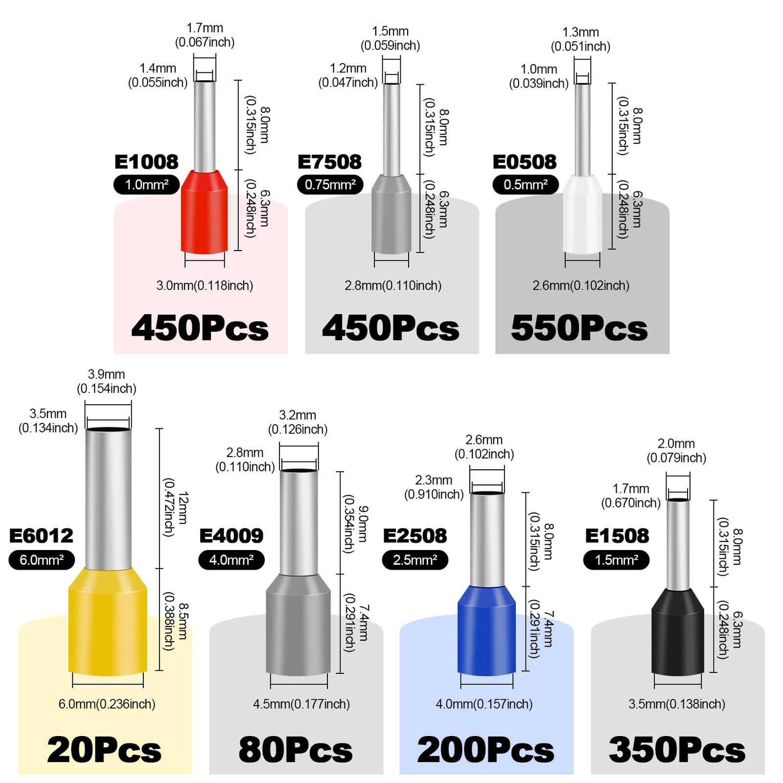 как выглядит 2100 PCS AWG 22/0.4mm - AWG 10/6.0mm Wire Ferrules Kit Insulated Copper Crim... фото