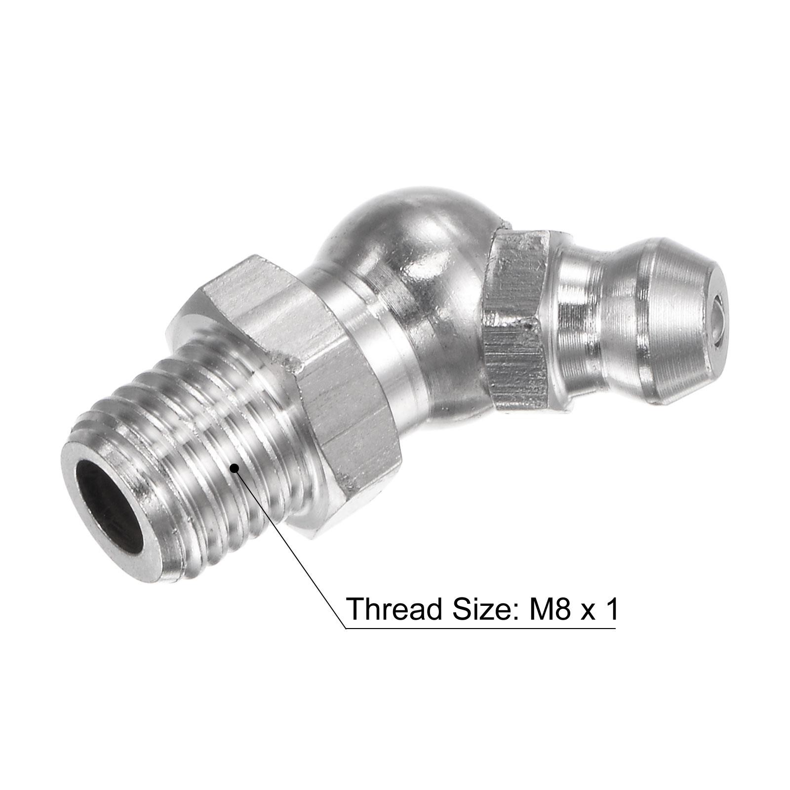 5Pcs 304 Stainless Steel 45 Degree Hydraulic Grease Fitting M8 x 1mm Thread