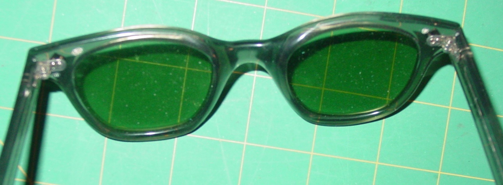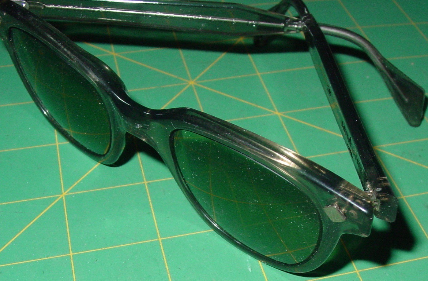 Vintage Bouton Safety Glasses 5948U Green Lenses 48mm Horn Rim Wayfarer NOS USA
