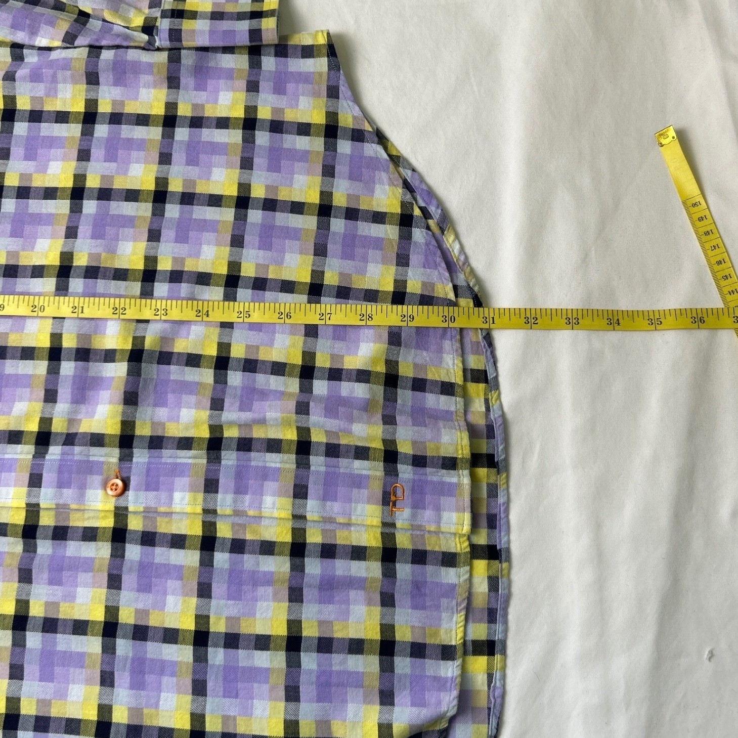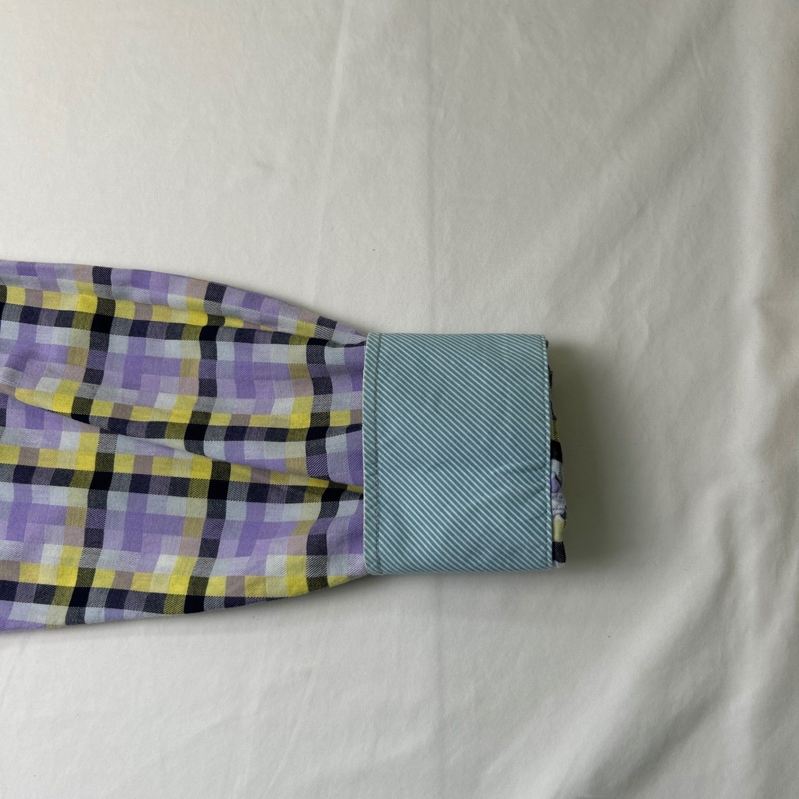 как выглядит Thomas Dean Mens Button Down Shirt Purple Yellow Plaid Size L Long Sleeve Cotton фото