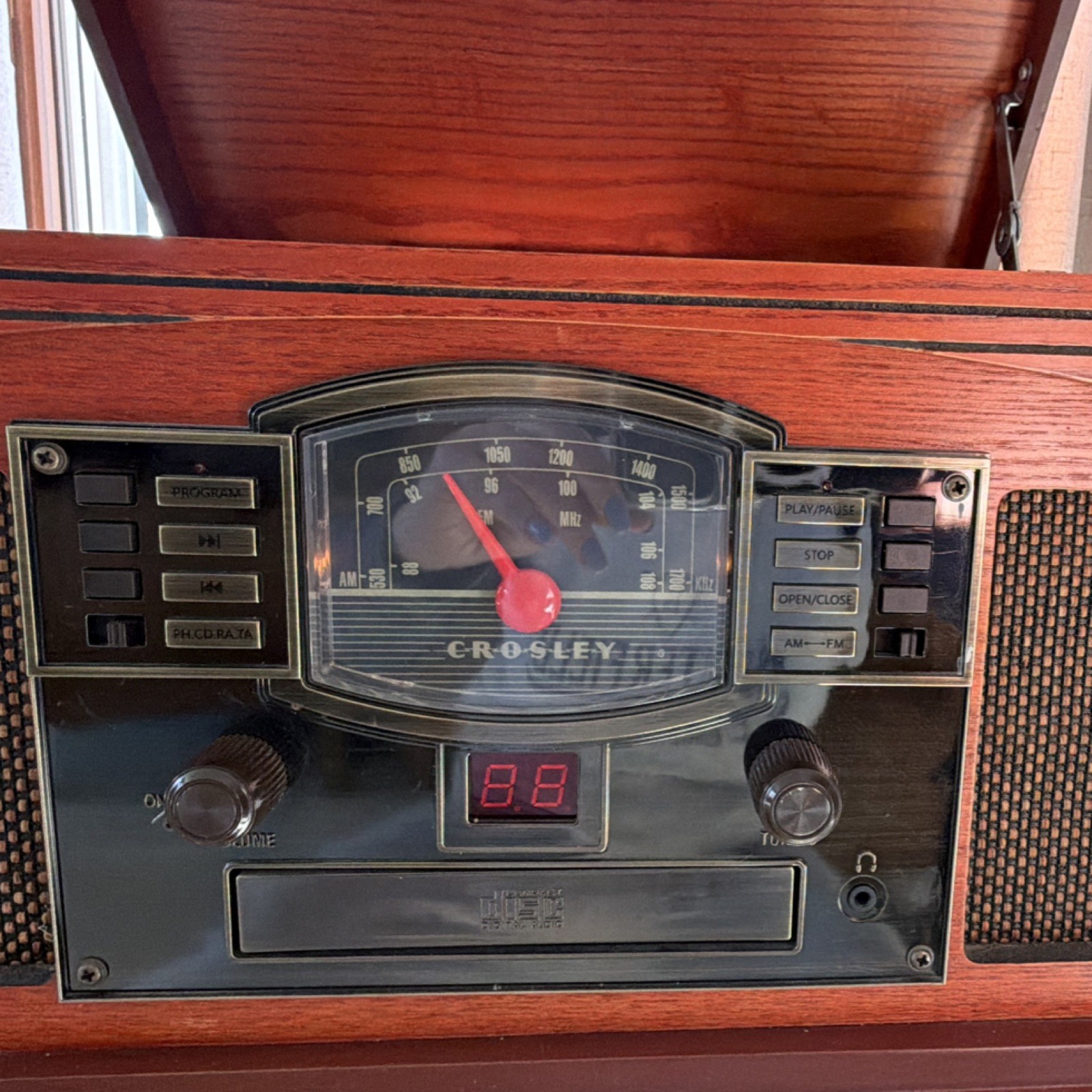 Crosley Brown Record Player Turntable AM/FM Radio Auto Stop Wood Finish