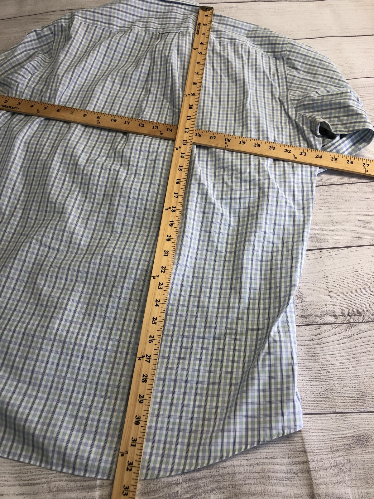 Kirkland Signature Dress Shirt Mens 16 34/35 L Blue Check Non Iron Long Sleeve