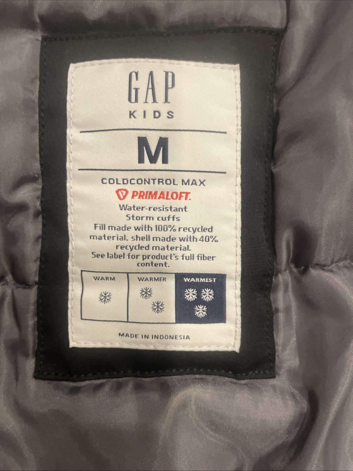 Gap Kid's Boy's Hooded Cold Control Max Black Jacket Primealot - Size Medium