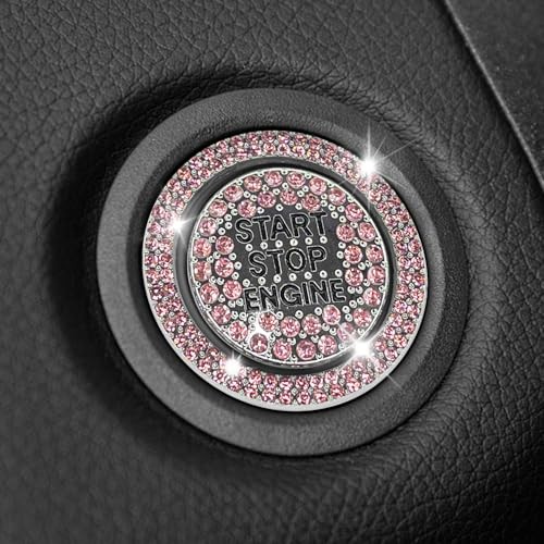 Push Start Button Cover Bling Car Accessories for Women Rhinestone Car Pink