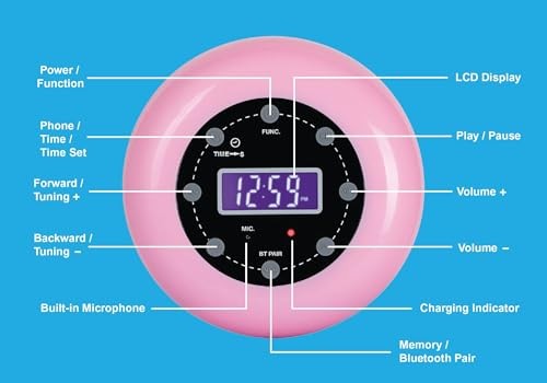 HX-159CR Shower Clock Radio, PLL FM Radio, Bluetooth with Hand-Free Pink