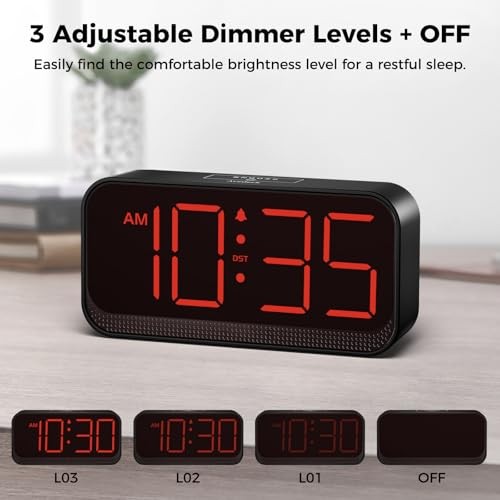 Battery Operated Digital Clock: Cordless Small Alarm Clock for Bedroom Red