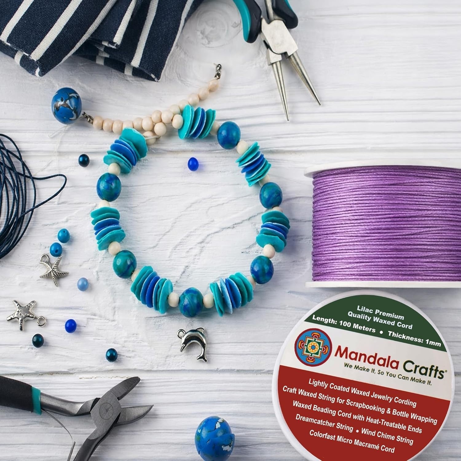 1mm Black Cotton Waxed Cord for Jewelry Making, 109 Yards Waxed Cotton Stri...