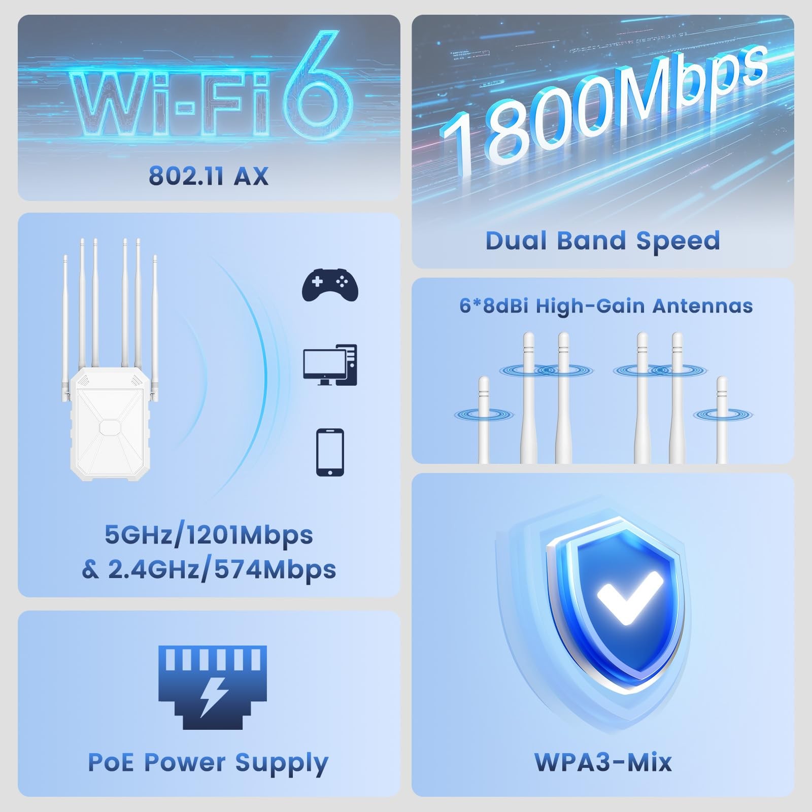 AX1800 Outdoor WiFi 6 Extender, Long Range Outdoor WiFi Extender Signal Boost...