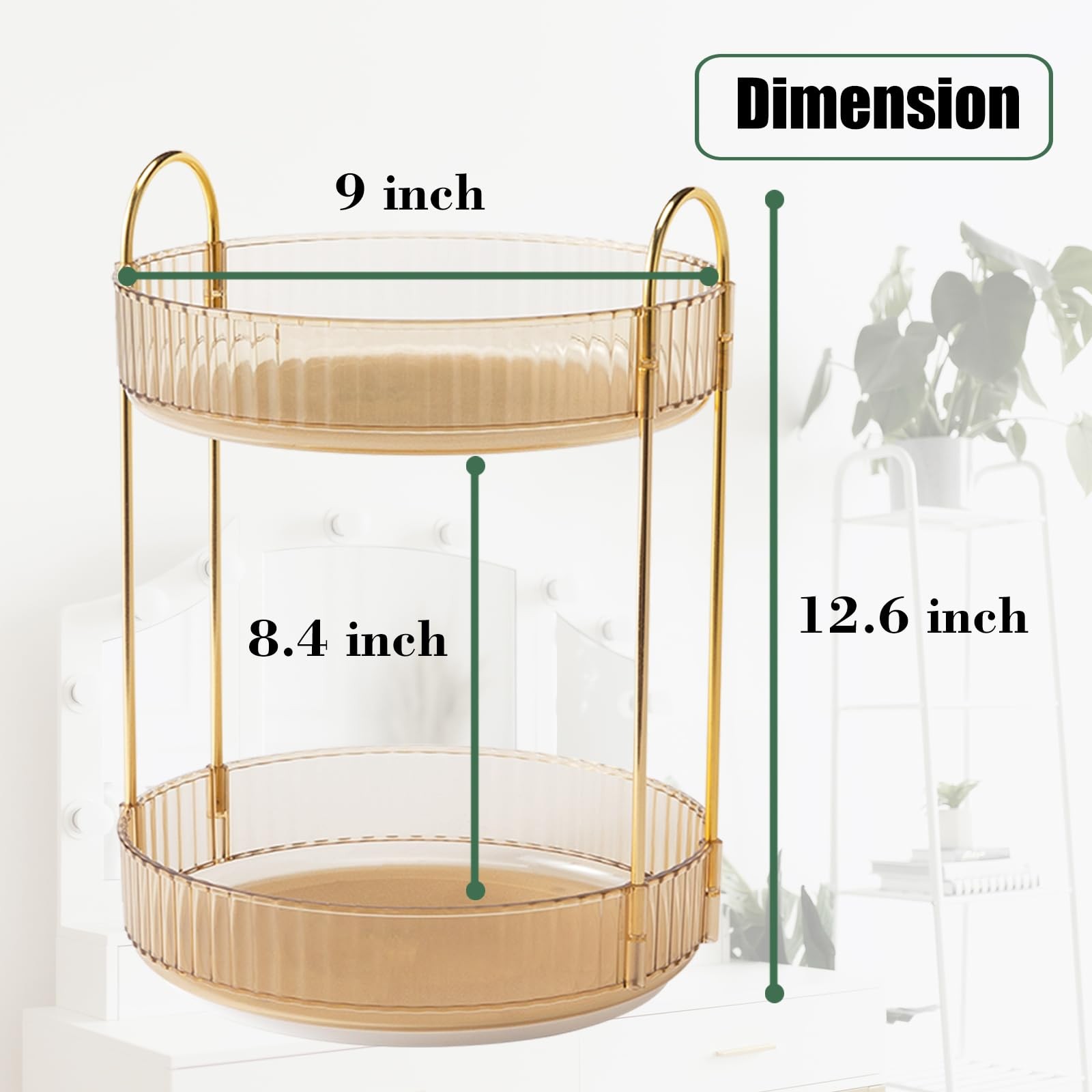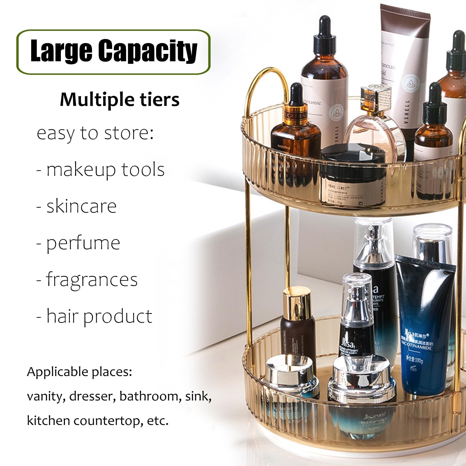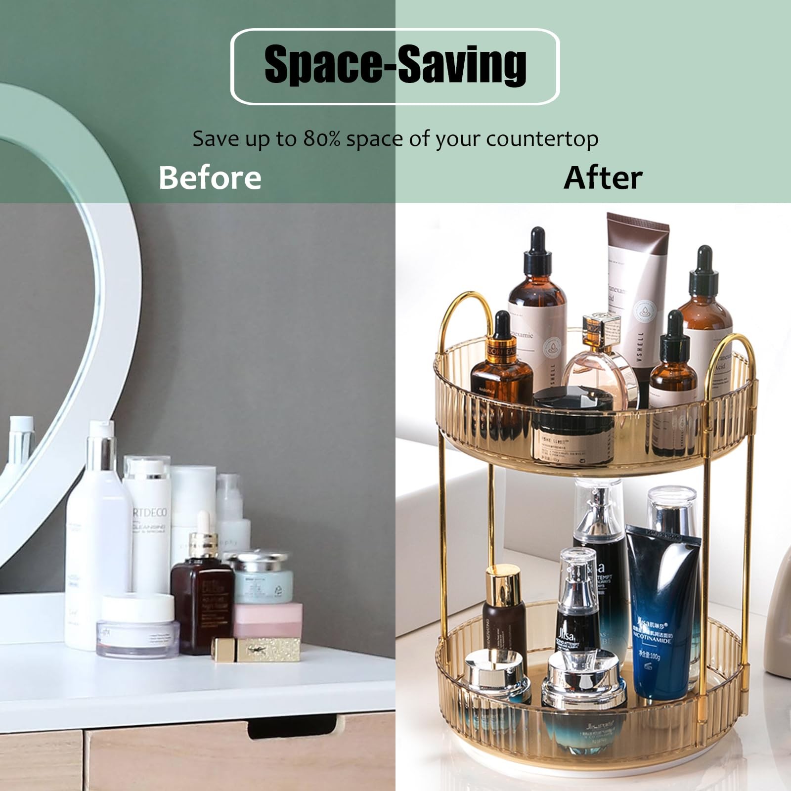 Rotating Makeup Organizer Countertop 2 Tier Lazy Susan Trays Clear Skincare P...