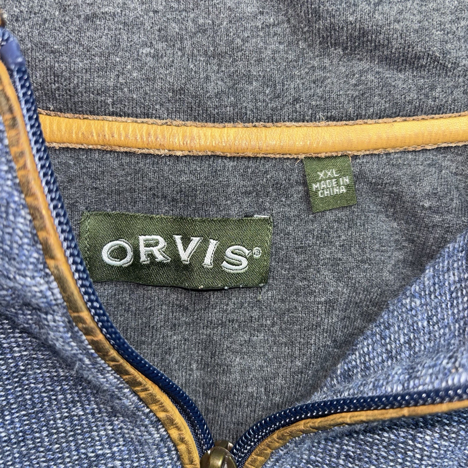 Orvis Blue Quarter Zip Sweater Simoom Tweed Men s Size 2XL XXL Elbow Patches