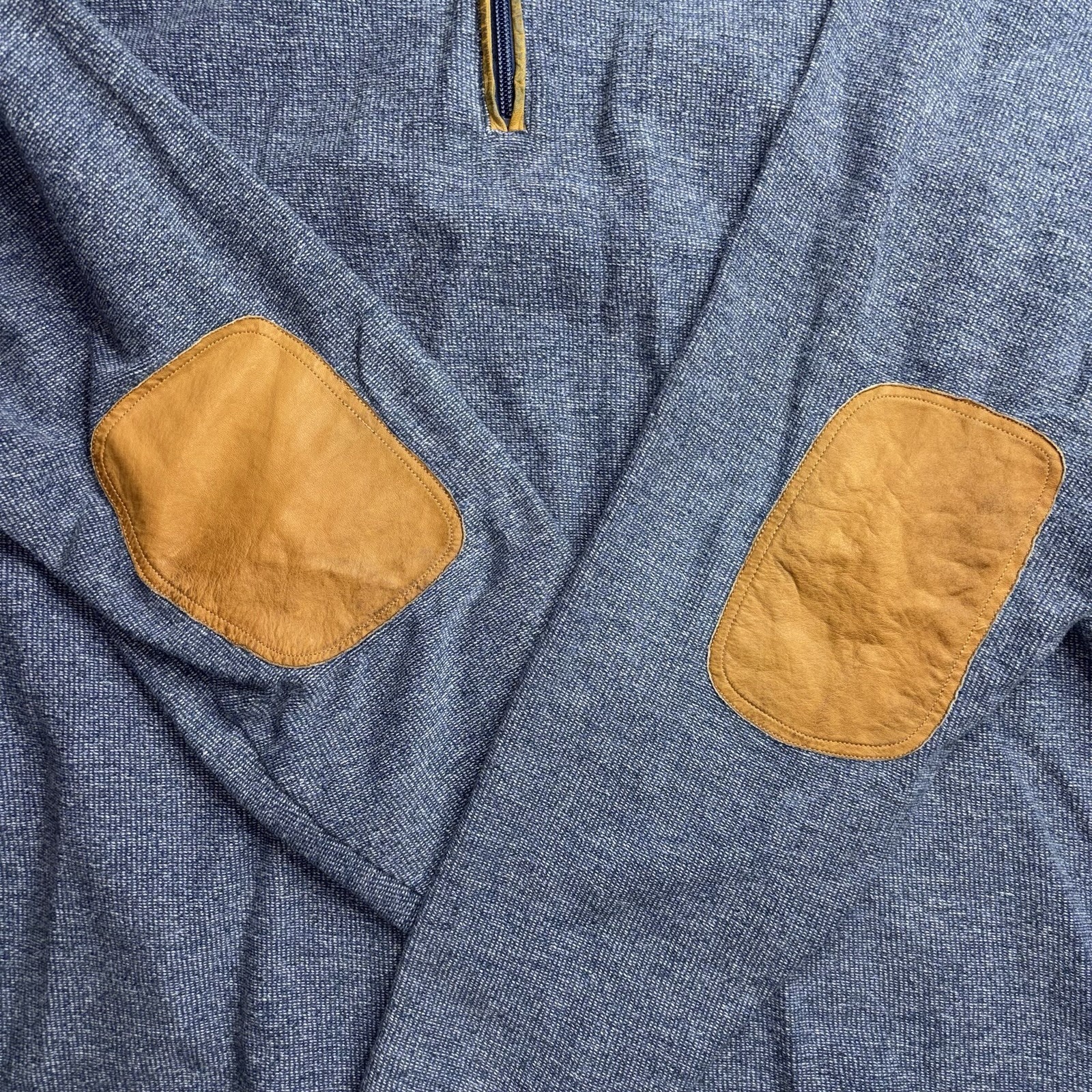 как выглядит Orvis Blue Quarter Zip Sweater Simoom Tweed Men s Size 2XL XXL Elbow Patches фото