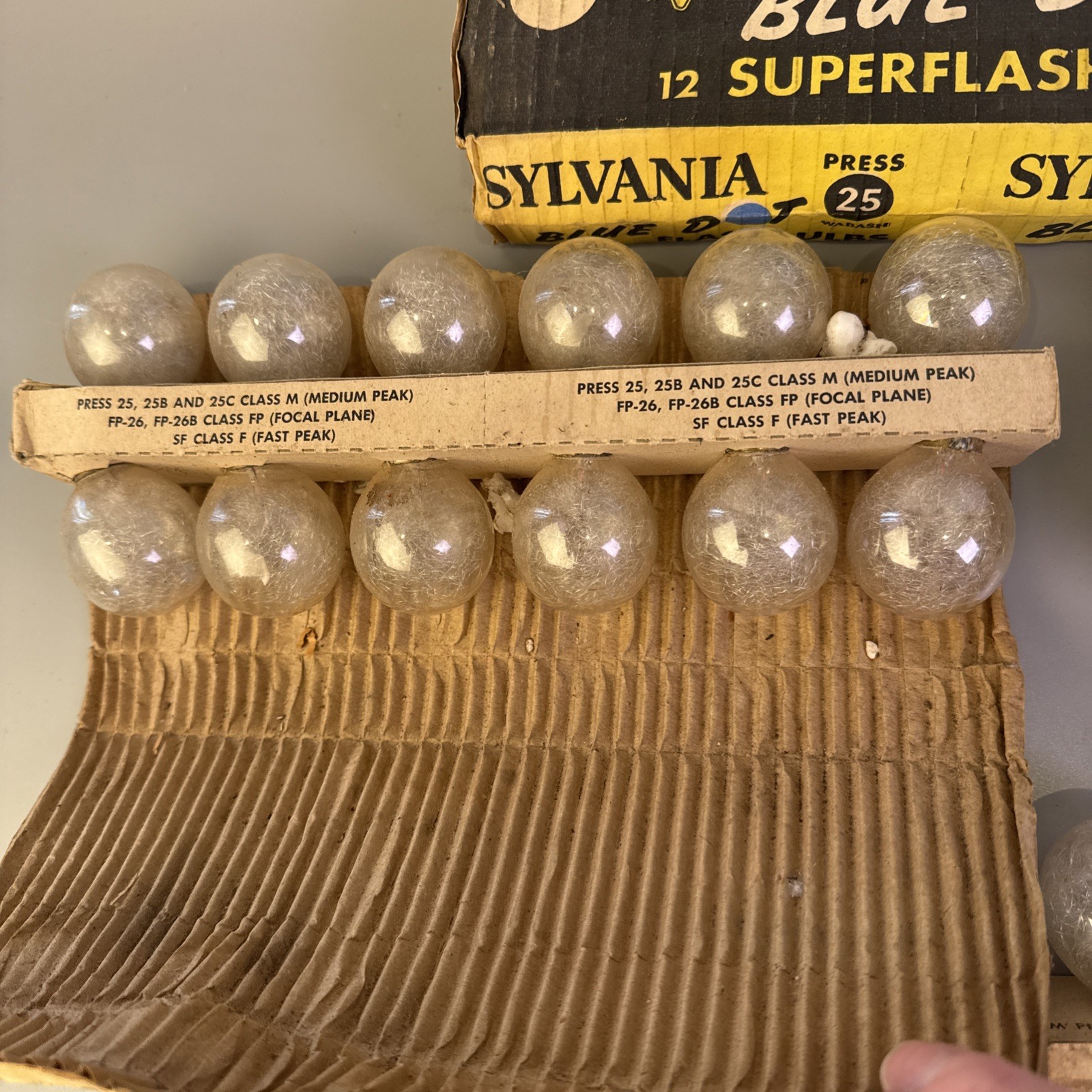 Vintage Sylvania Blue Dot Flash Bulbs 25 26 Lot Of 42 Bulbs - AS IS