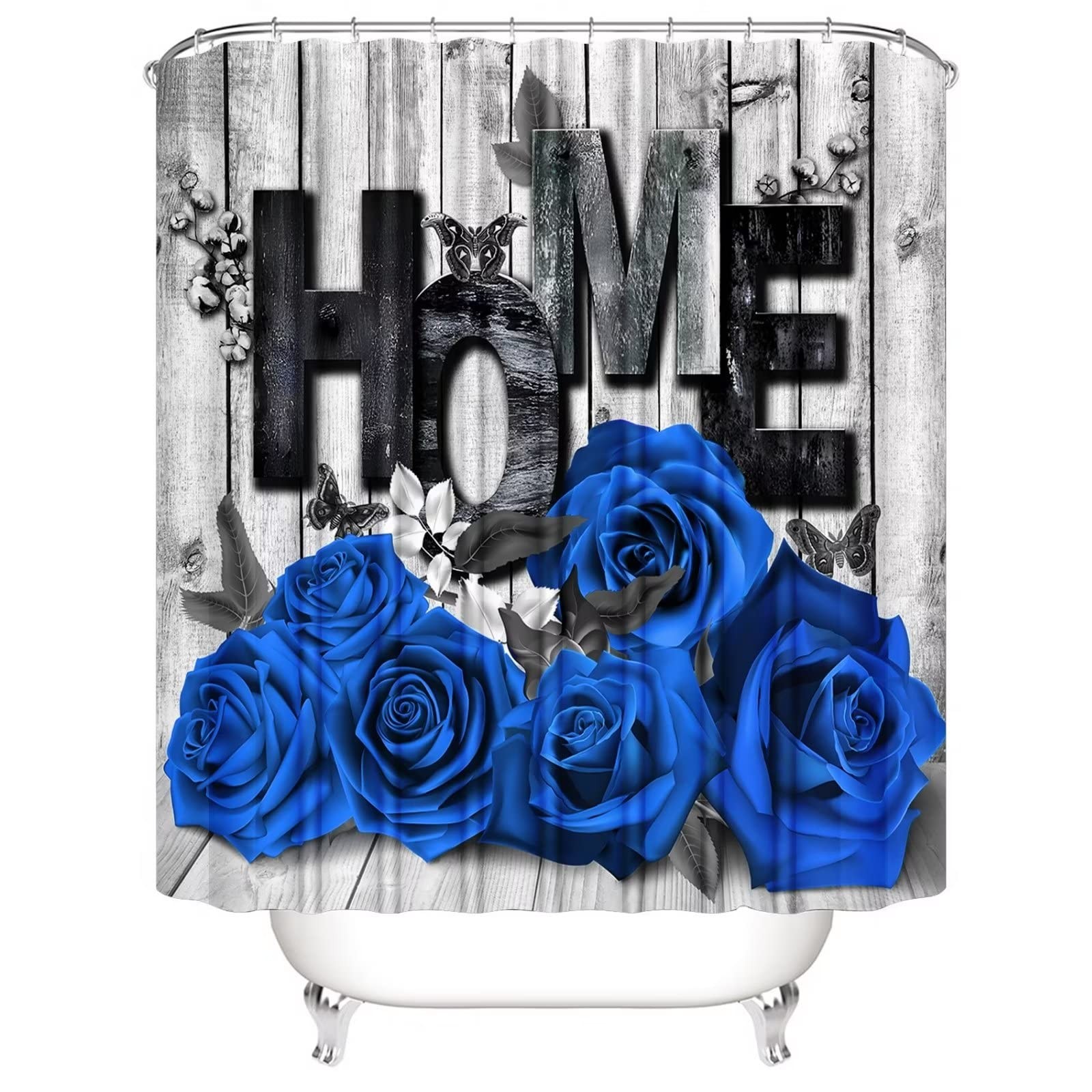 как выглядит Blue Rose Valentines 4 Pcs Shower Curtain Sets Non-Slip Rugs Bath Mat Cover U... фото