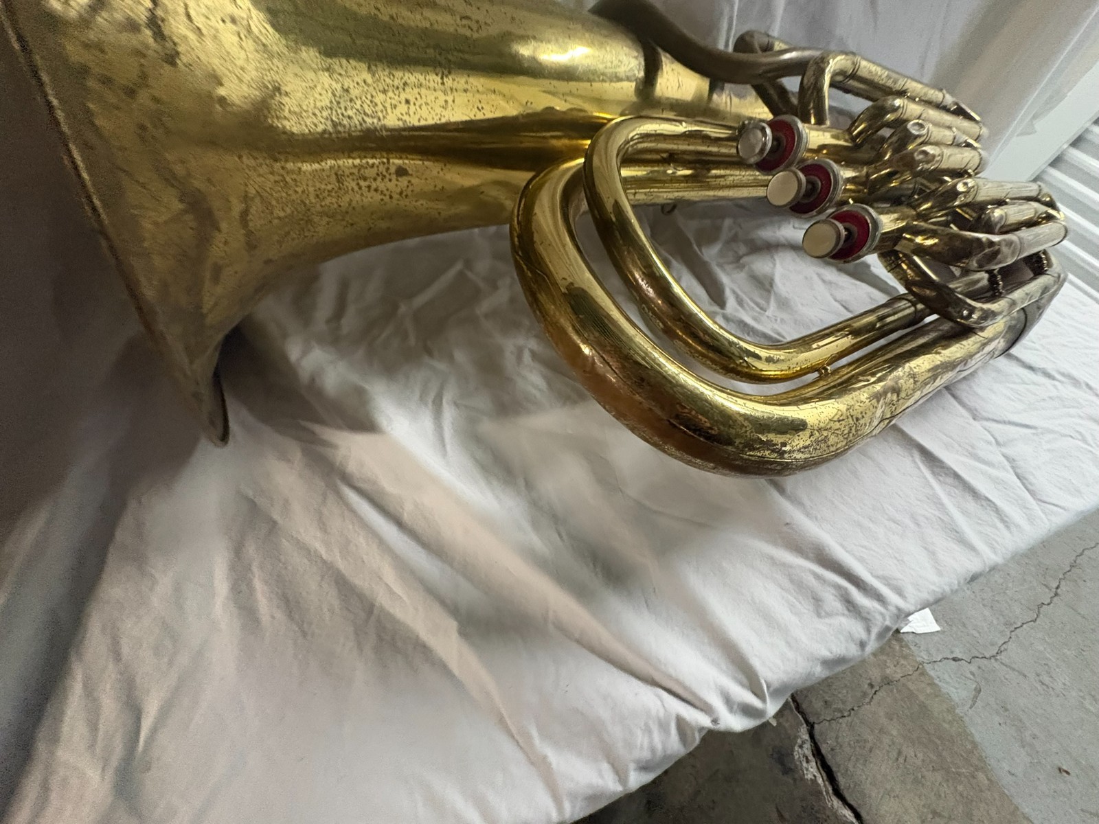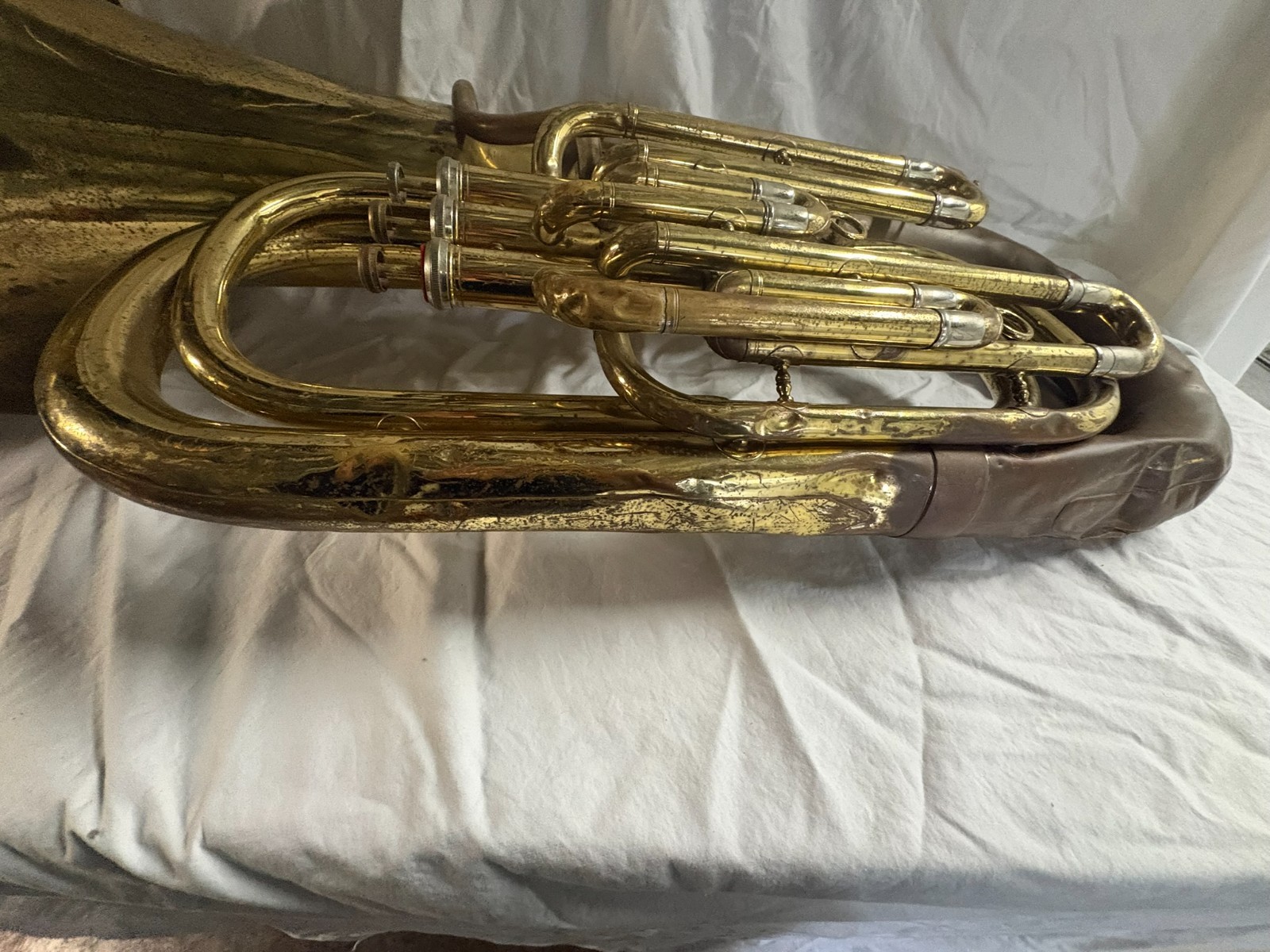 как выглядит Mirafone Standard Tuba 2835 3 Valve Brass Tuba Parts Repair Dent Project BT фото