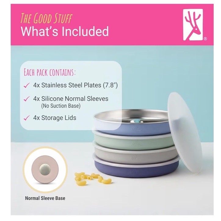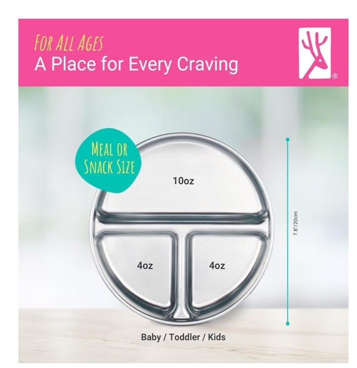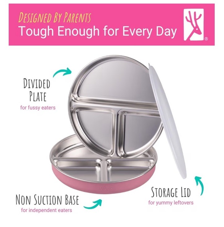 как выглядит Elk and Friends Stainless Steel Divided Plates with Silicone Sleeve for Babies фото