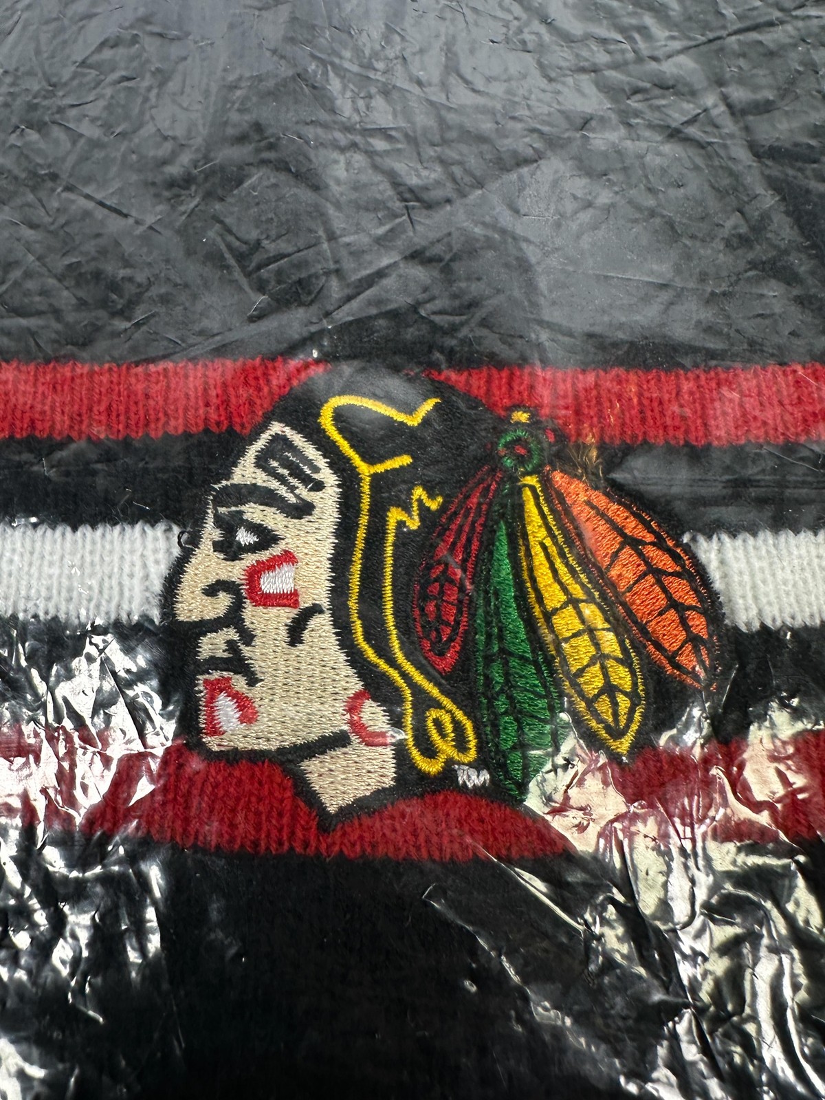 • Chicago Blackhawks Hat Beanie Men One Size Black NHL Hockey Striped Knit NOS