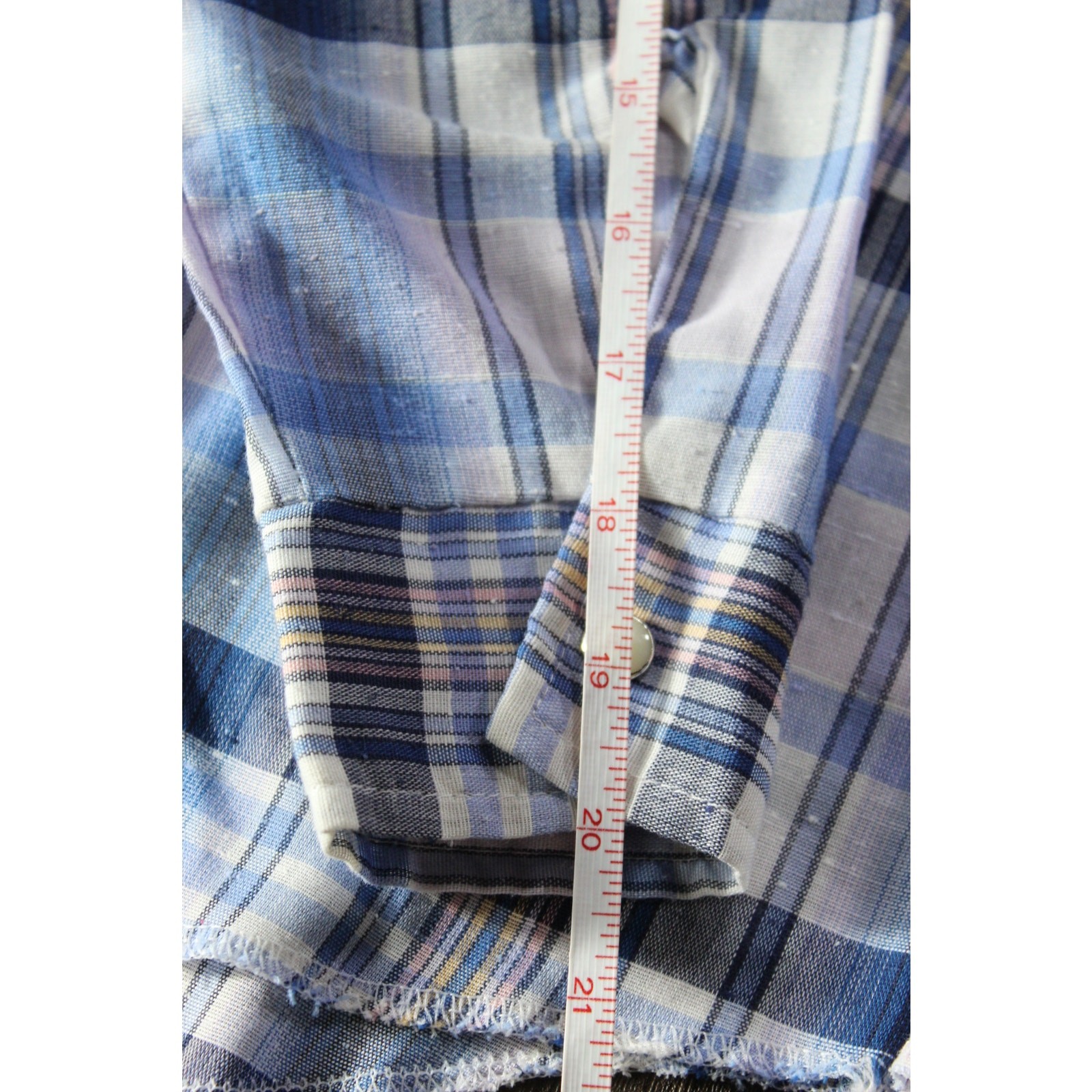 как выглядит VTG Wrangler blue pastel plaid long sleeve pearl snap western shirt 12 pearly фото