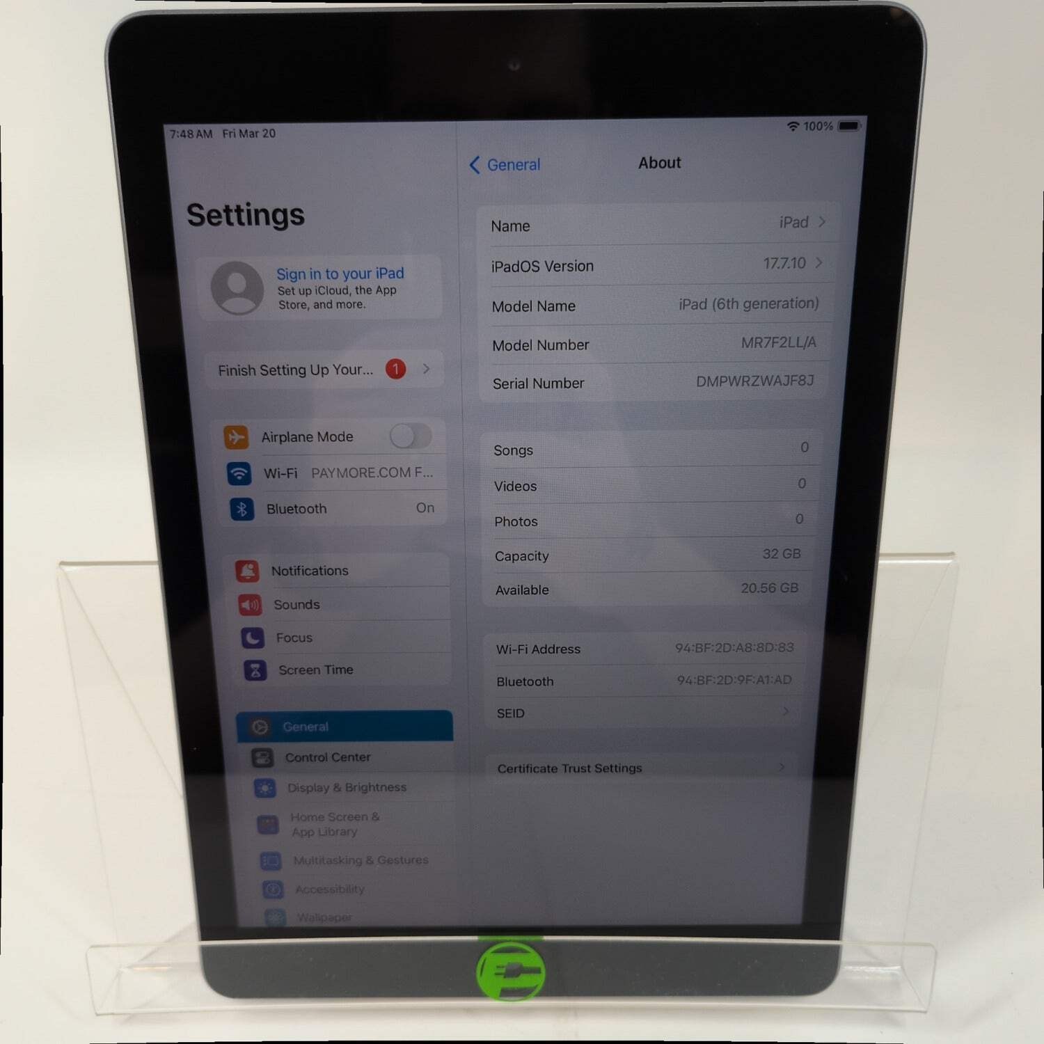 WiFi Only Apple iPad 6th Gen 32GB 17.7.10 Space Gray MR7F2LL/A