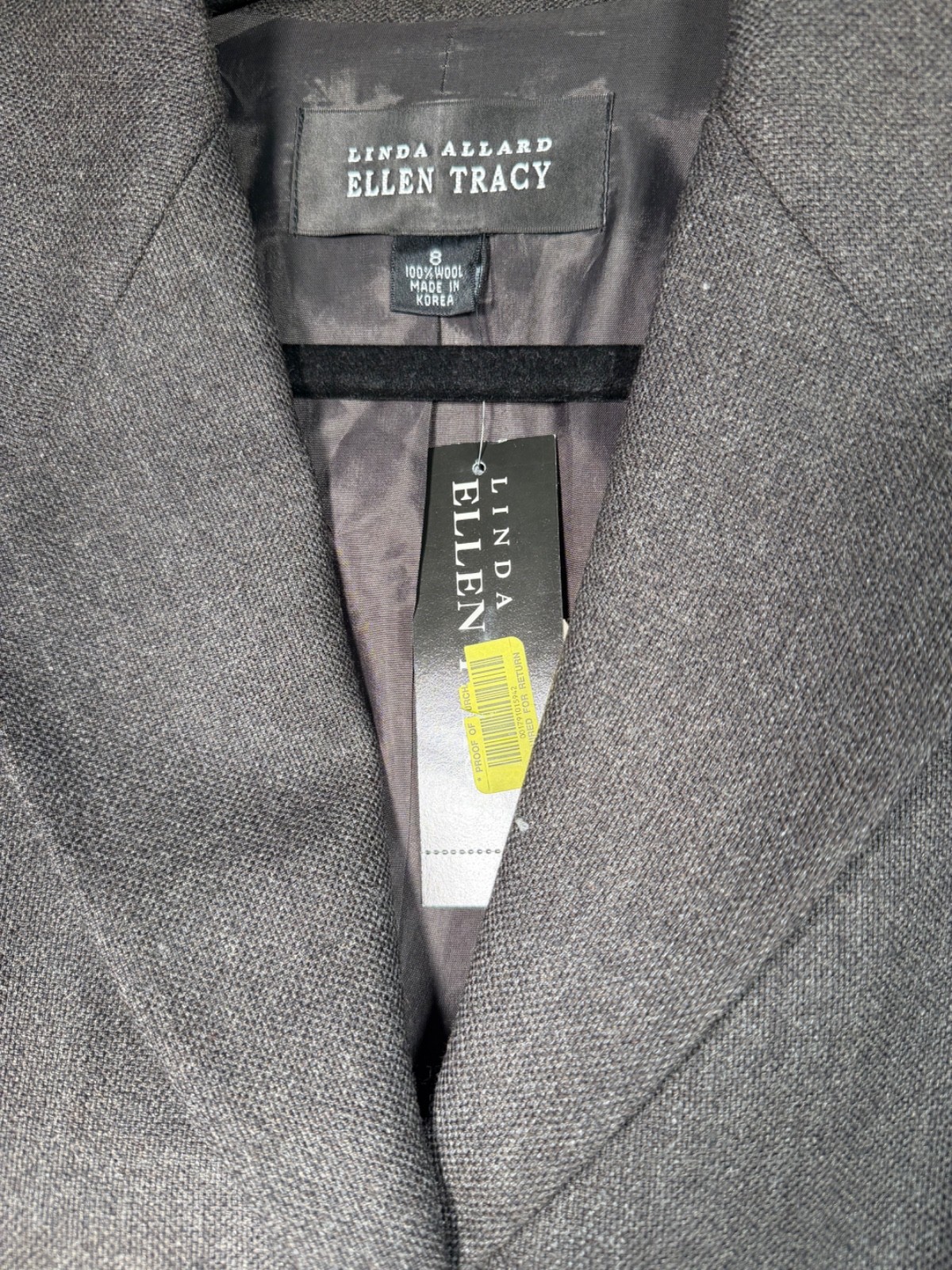 NWT Linda Allard Ellen Tracy Wool Blend Blazer Women's 8 Gray Black 100 Wool