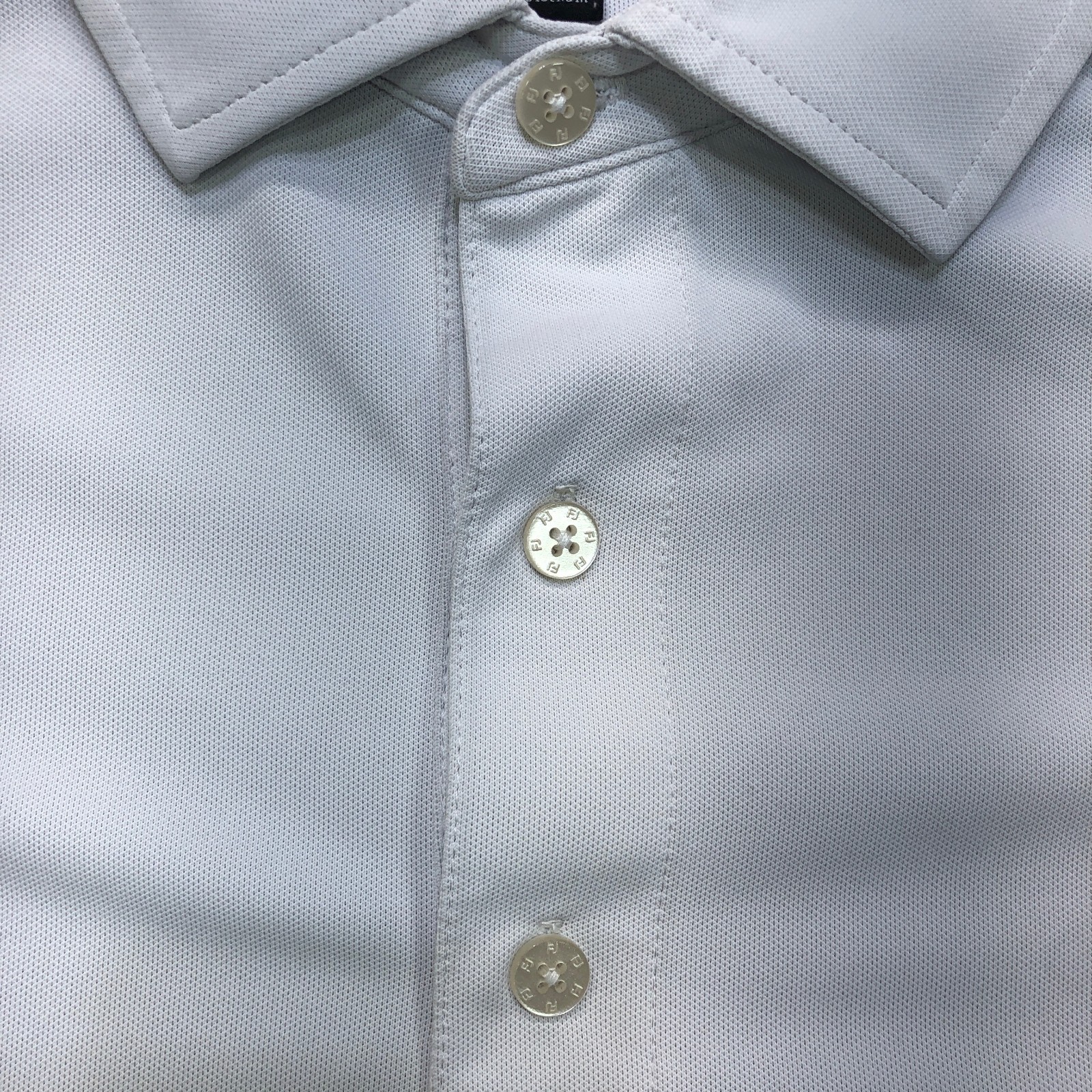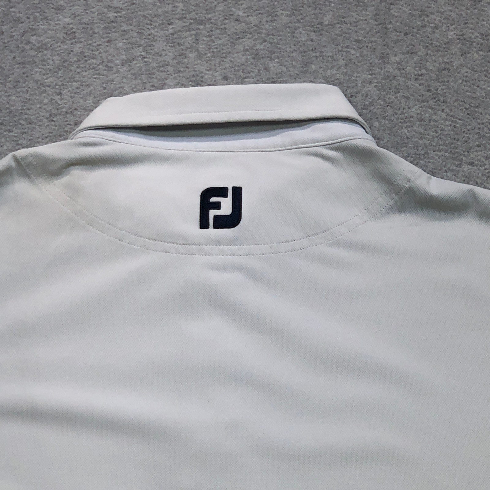 как выглядит Footjoy FJ Polo Shirt Mens Large White Stripe Athletic Fit Golf Performance Logo фото