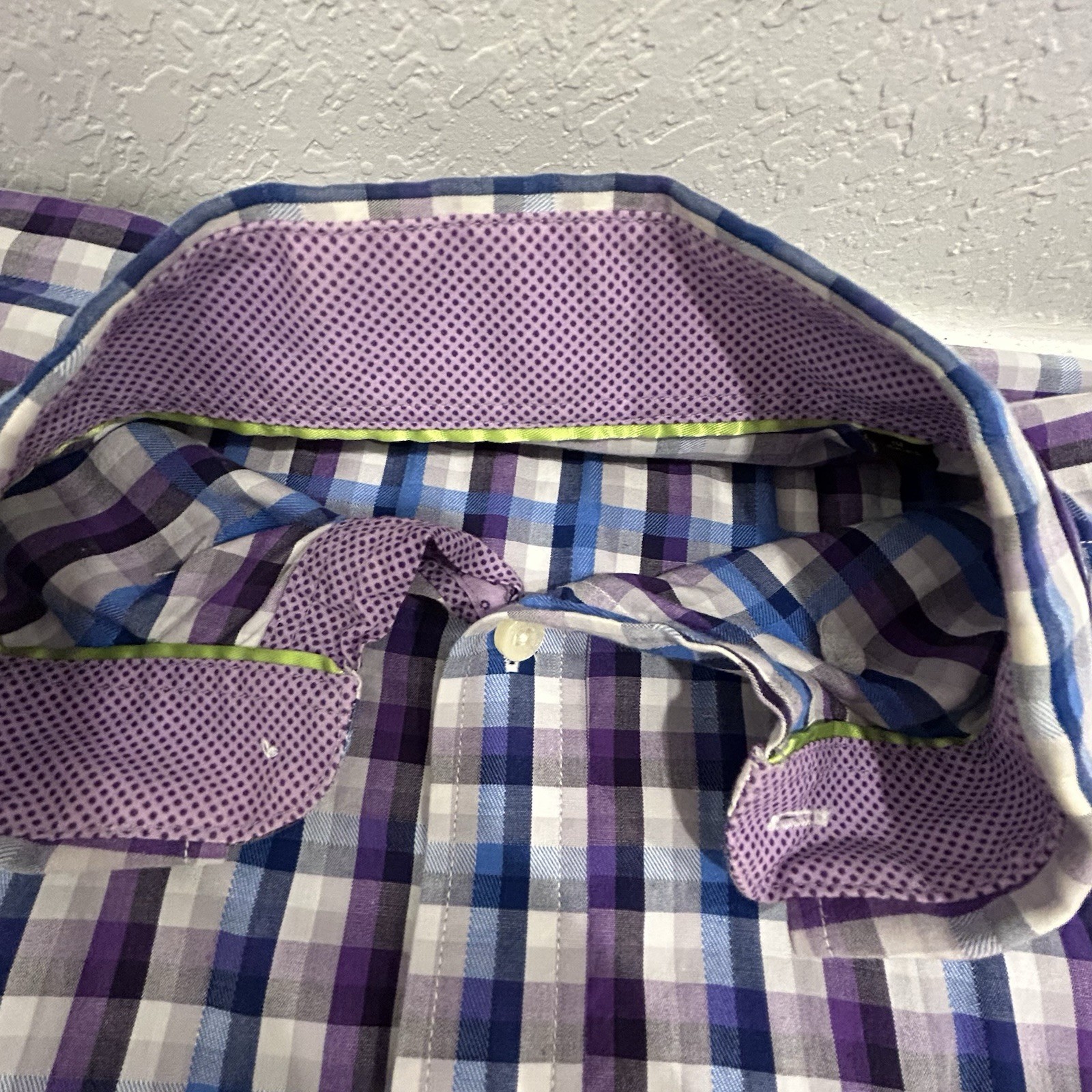 Tailorbyrd Dress Shirt Checkered Flip Cuff Purple Blue Button Up Men s Large