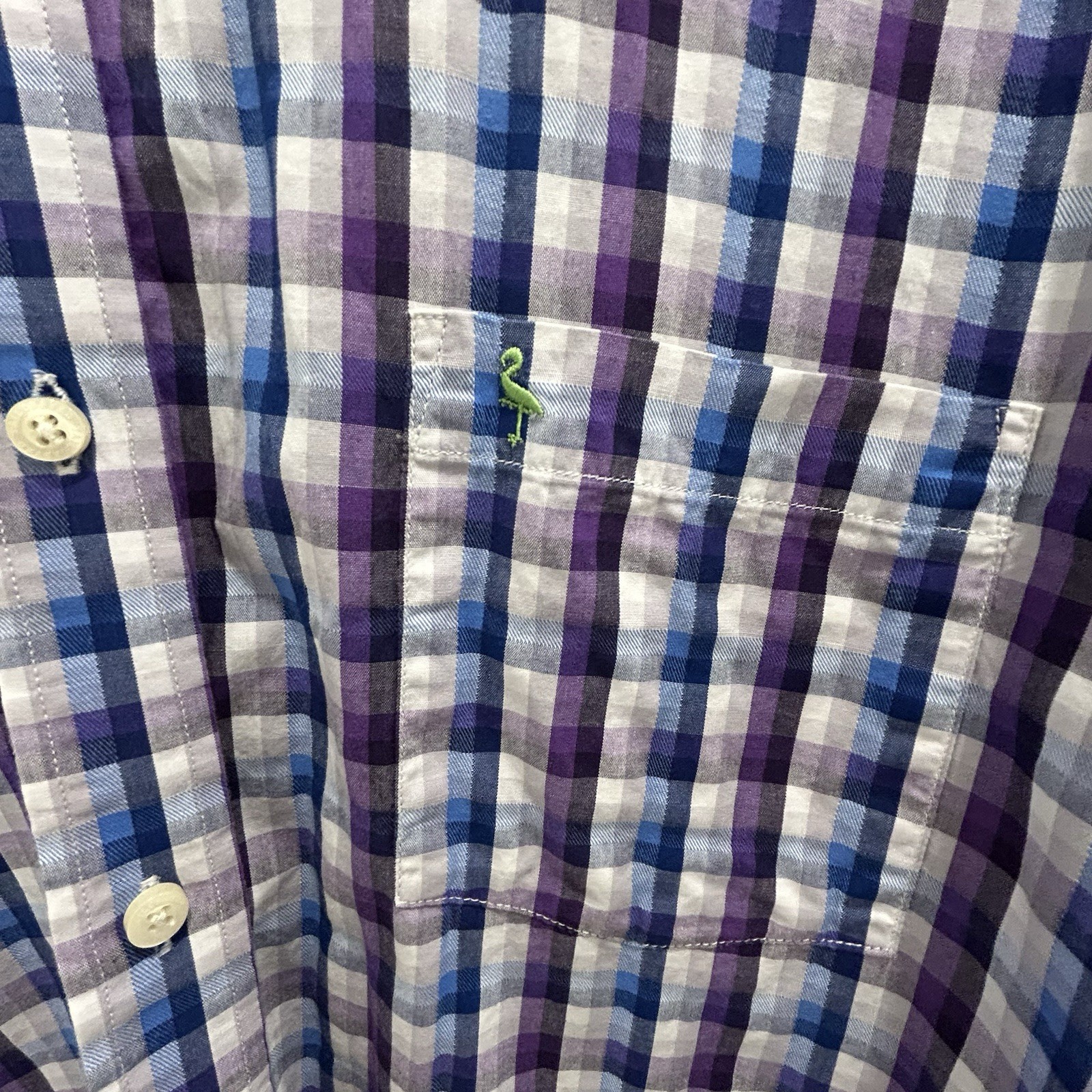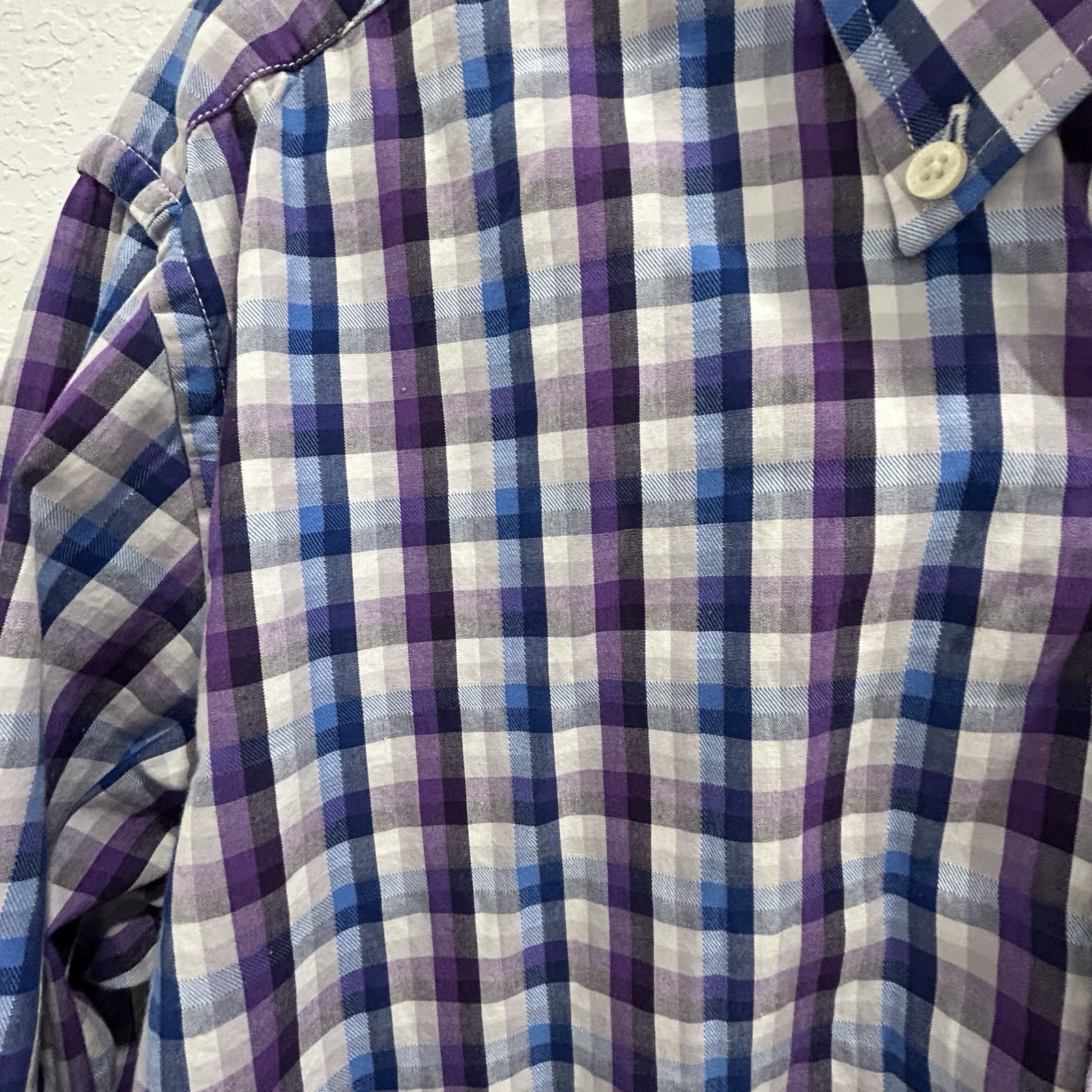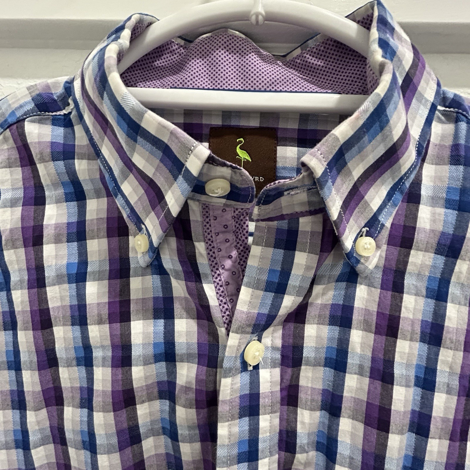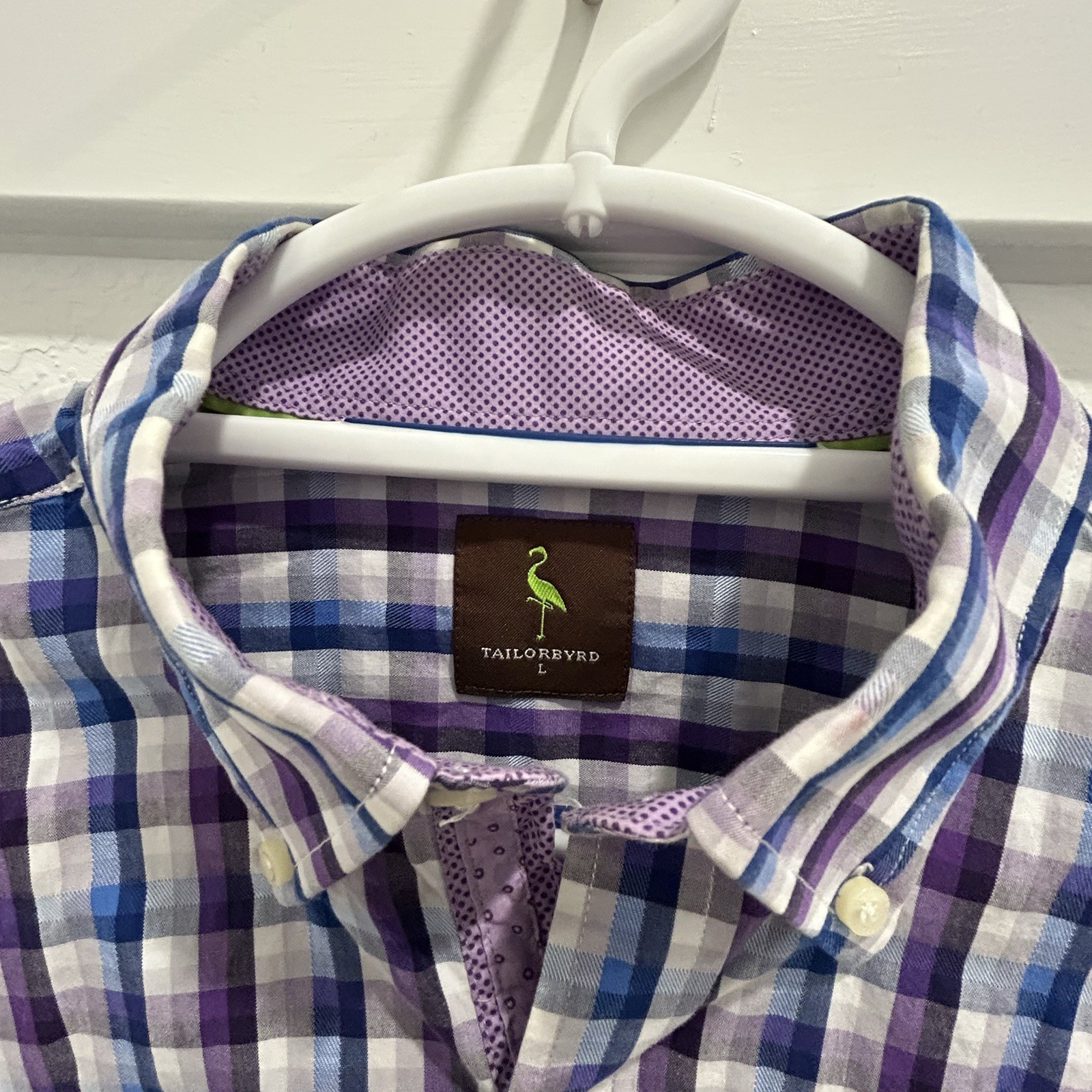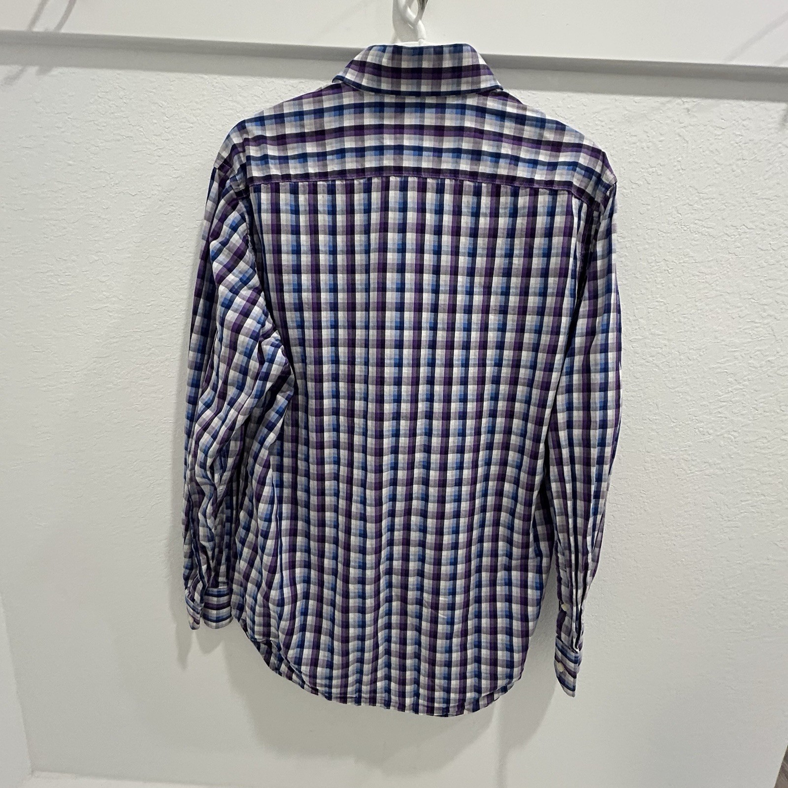 как выглядит Tailorbyrd Dress Shirt Checkered Flip Cuff Purple Blue Button Up Men s Large фото
