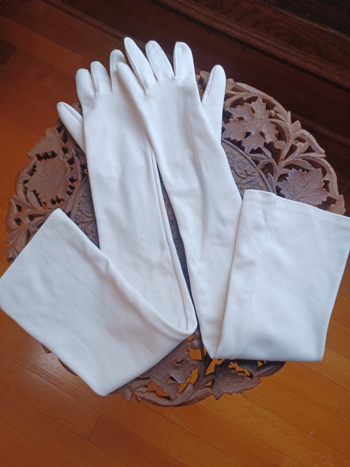 как выглядит Vintage Mid-century 1950s Ivory Opera Gloves with 3 Button Mousquetaire фото