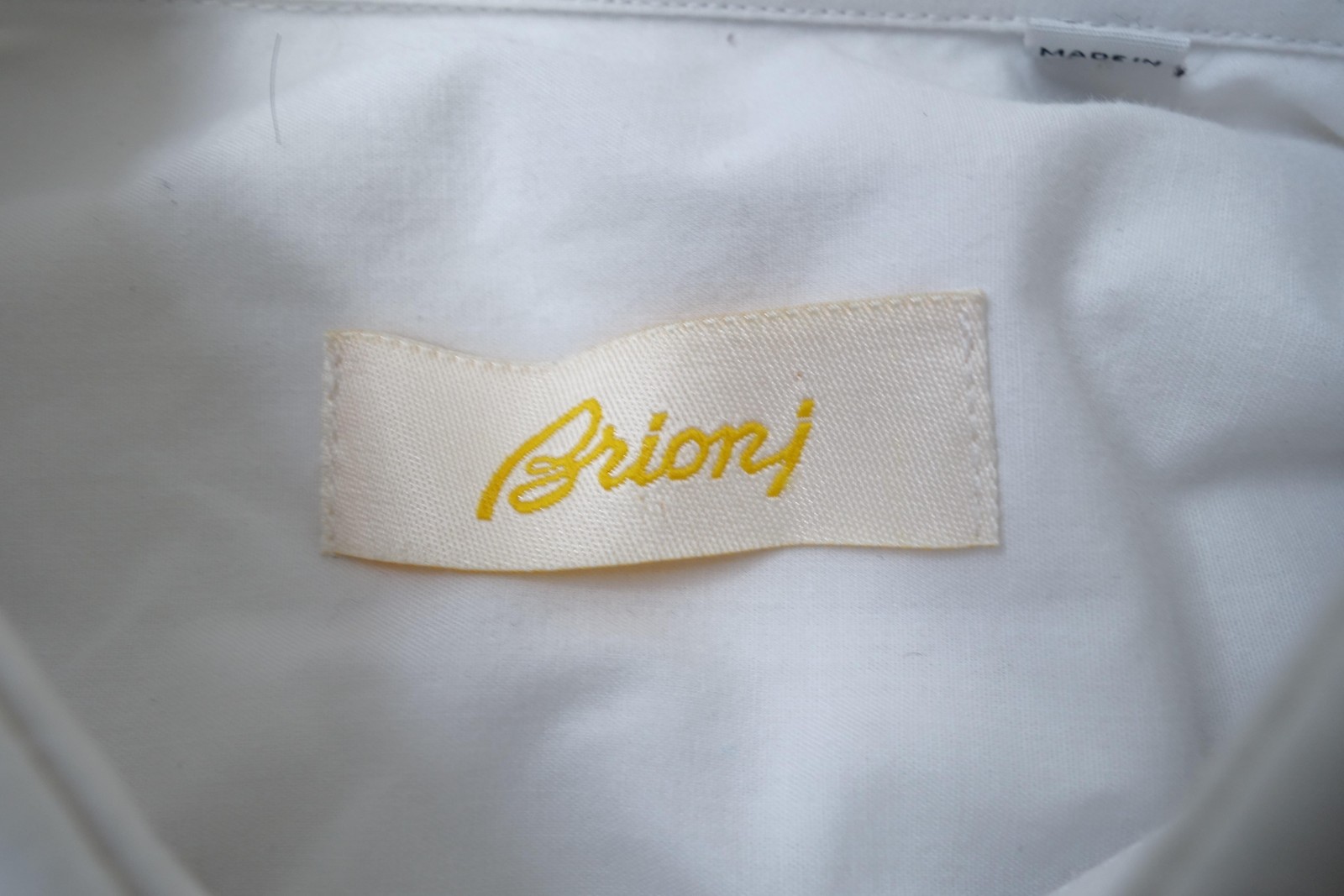 Brioni Shirt Mens Medium White Solid Long Sleeve Dress Spread Collar Made Italy