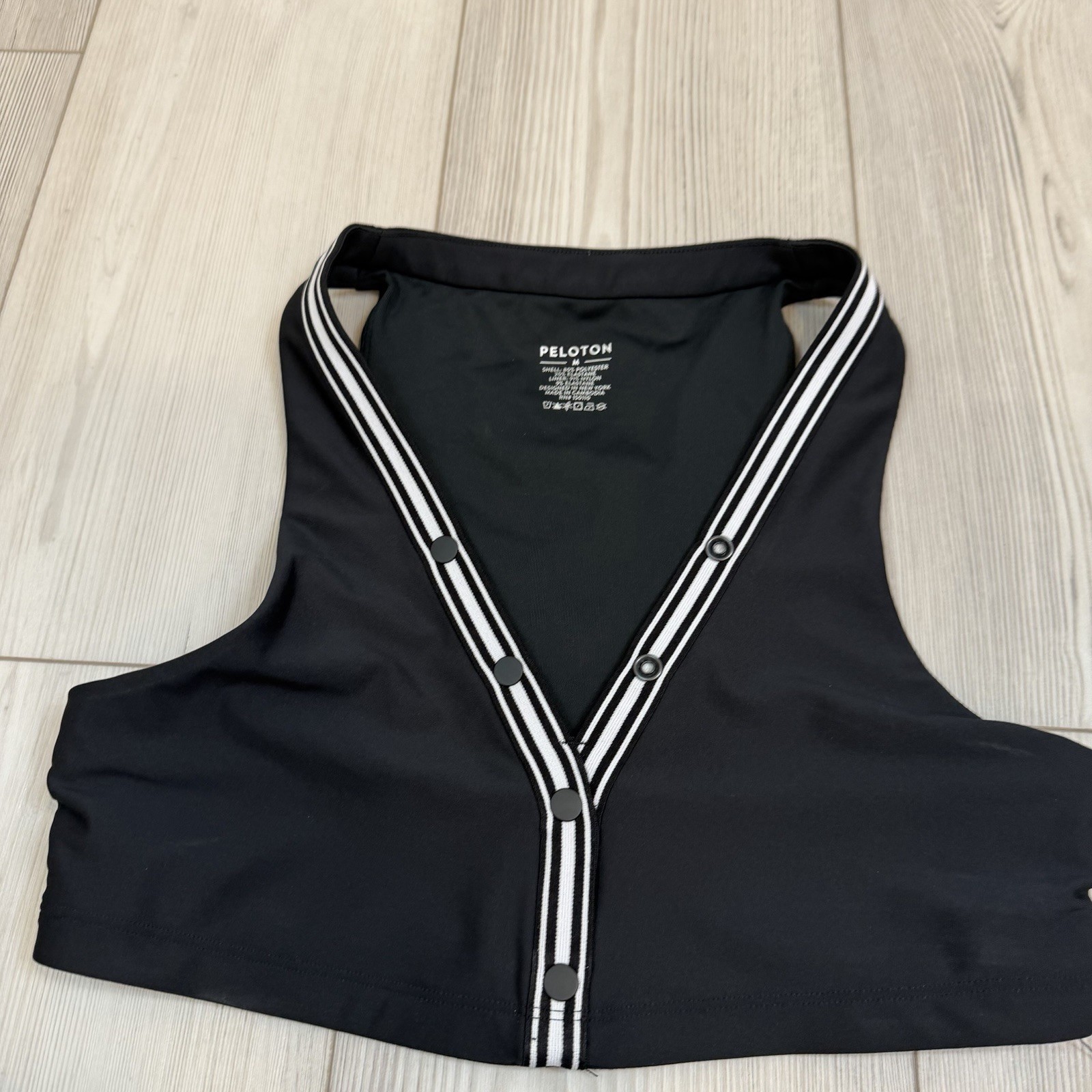 как выглядит NWT Peloton X Robin Arzon Medium Merit V-Neck Button Henley Bra Black фото