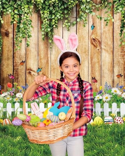 как выглядит 5x7ft Spring Easter Backdrop Rustic Wood Green Leaves Floral Colorful Eggs фото