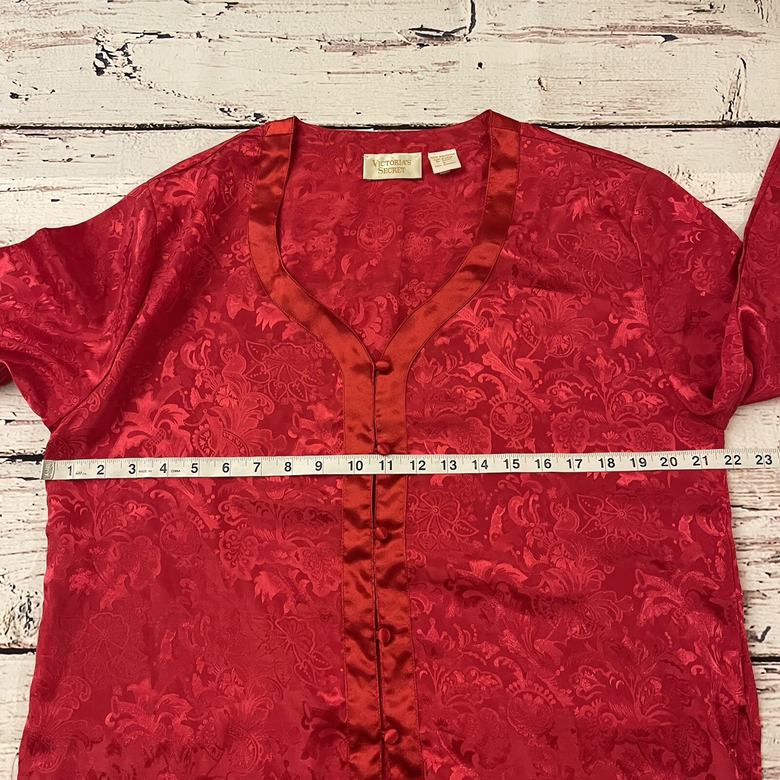 Vintage Gold Label Victoria s Secret Red Satin Floral Pajama Top Size Small