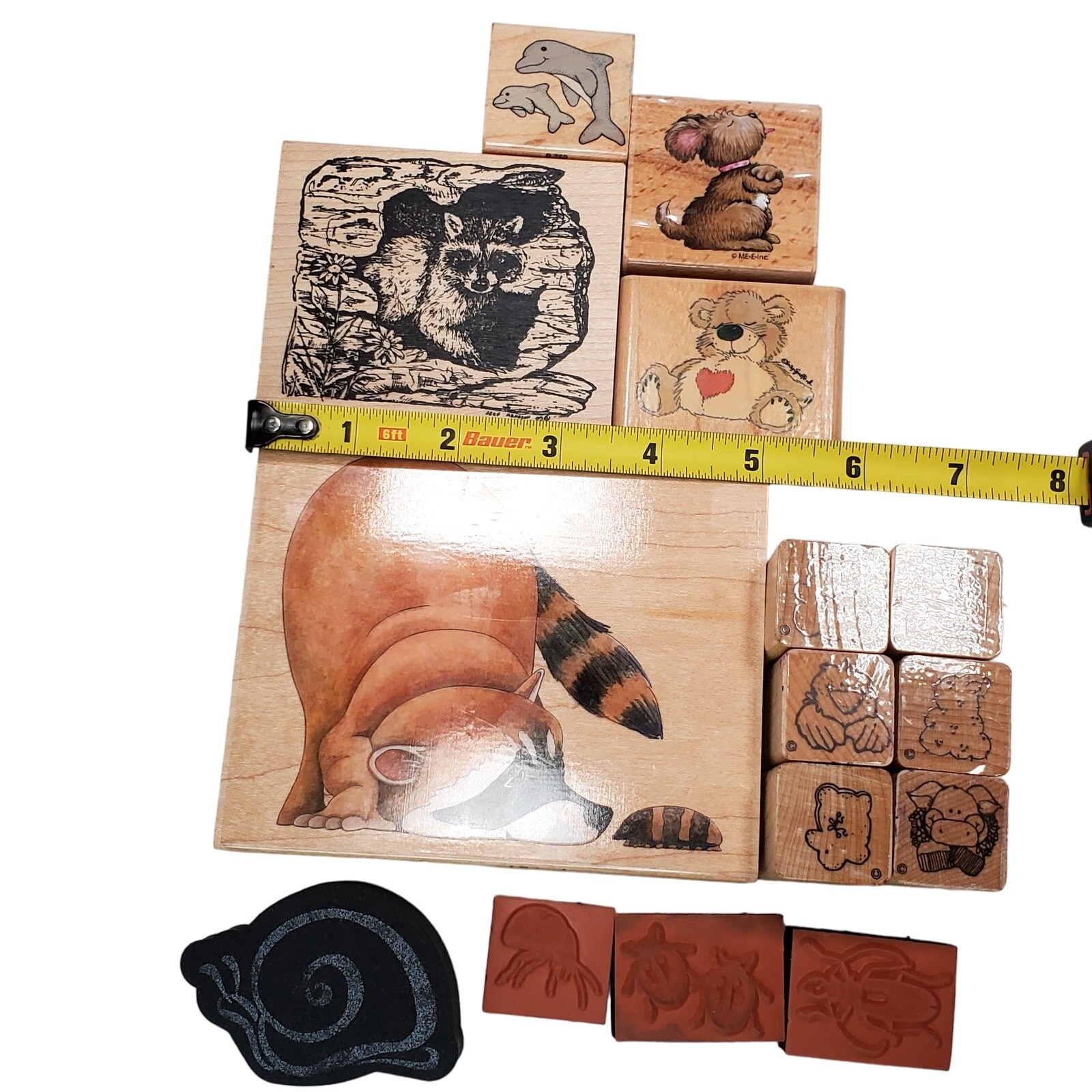 Vtg Junk Drawer Lot of 15 Cute Animal Core Rubber Stamps Raccoon Bear Insects