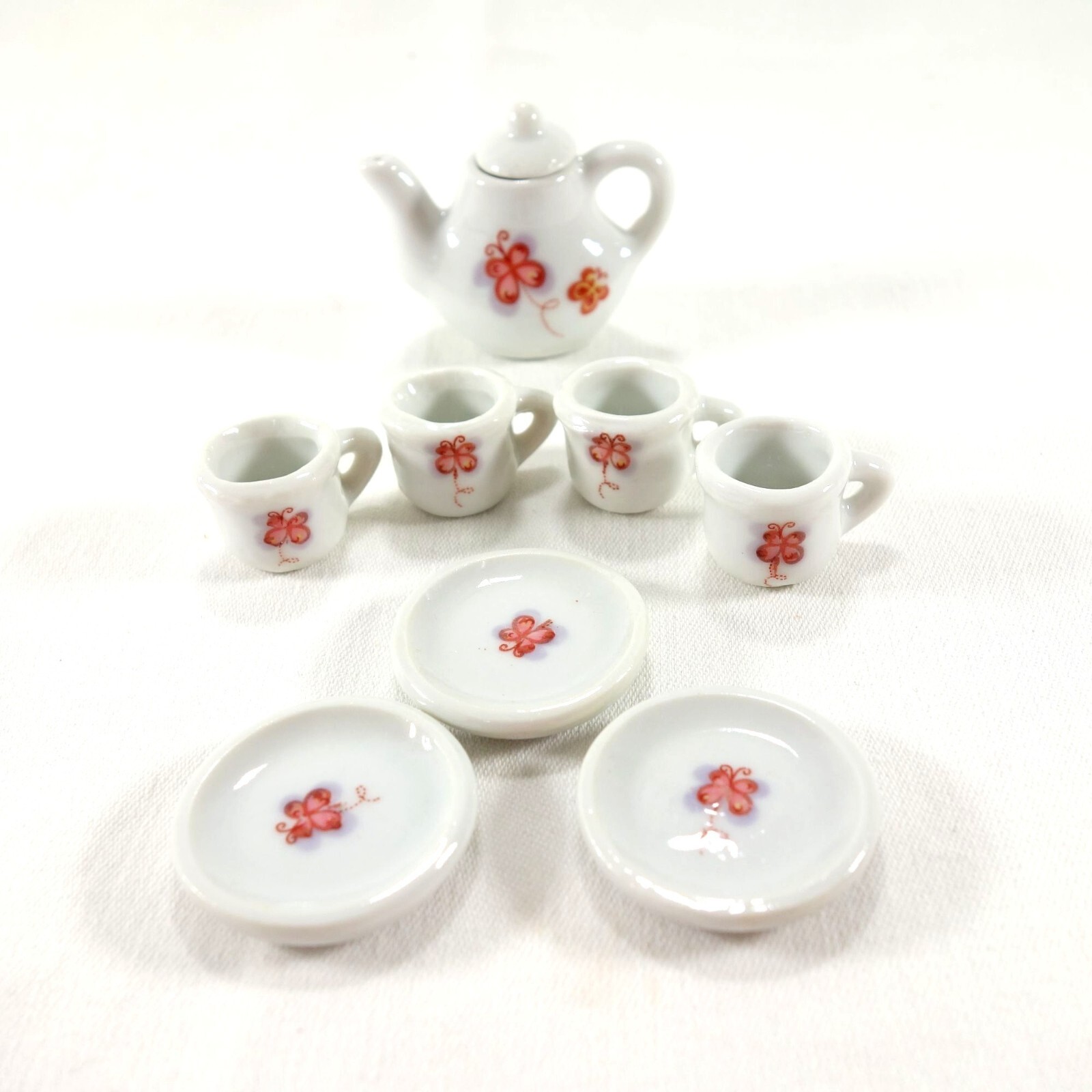 • Miniature Ceramic Tea Set Butterfly Motif for Dolls or Dollhouse 9 Pieces