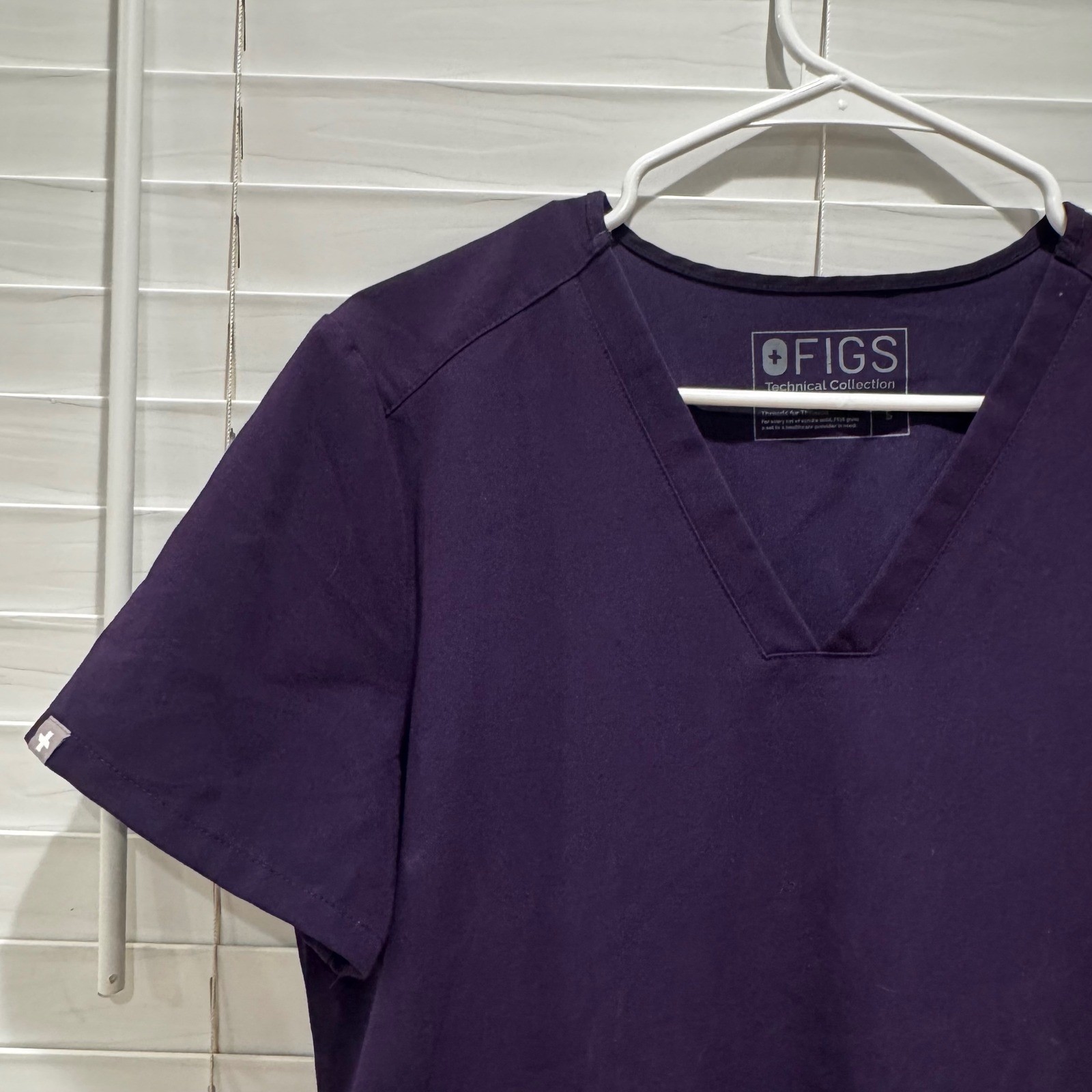 как выглядит FIGS Technical Collection Purple V-Neck Scrub Top Short Sleeve Womens Size S фото