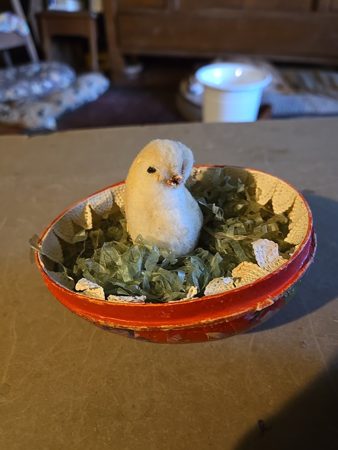 как выглядит Antique German Paper Mache 5 long Easter Egg Candy W/Flower Bouquets Contents фото