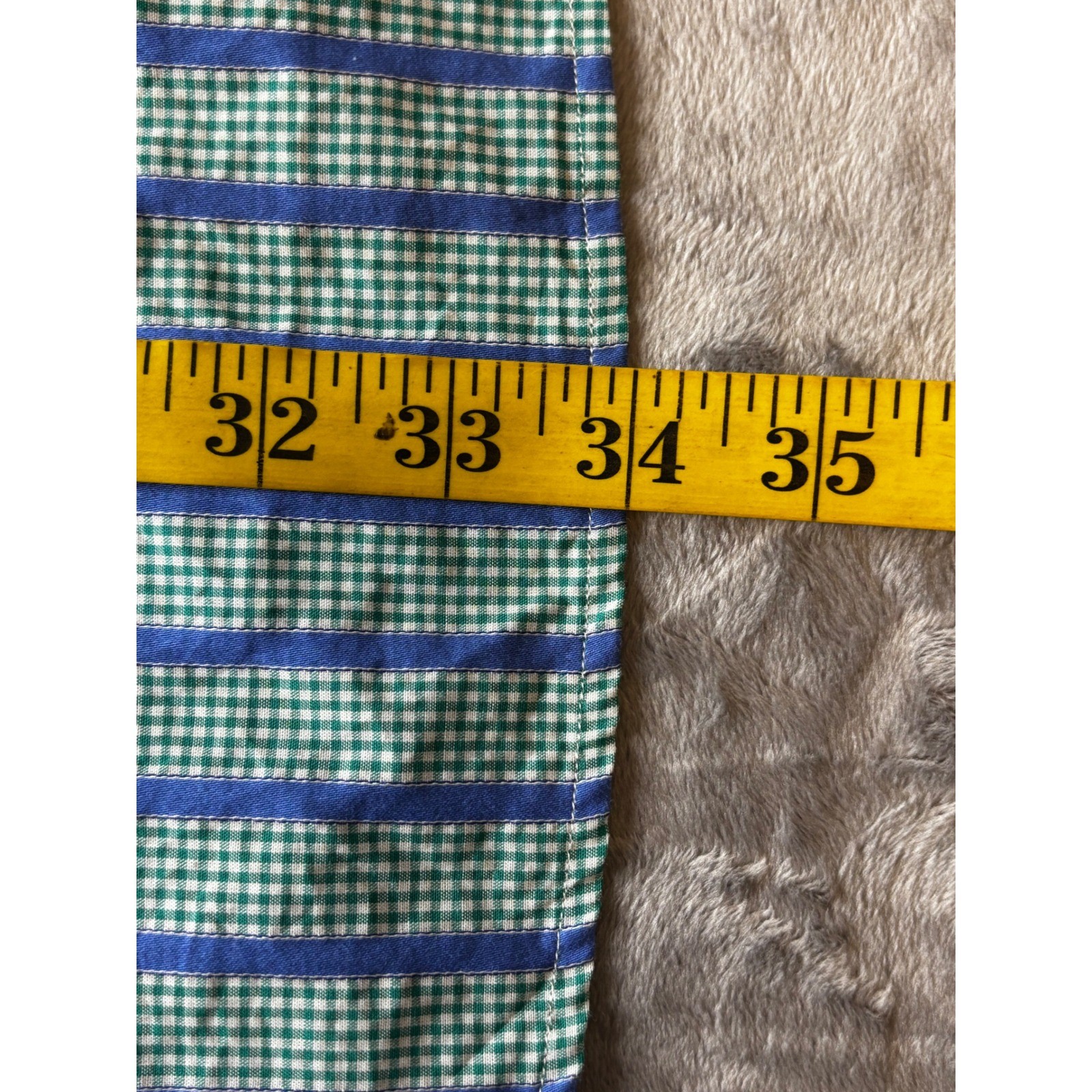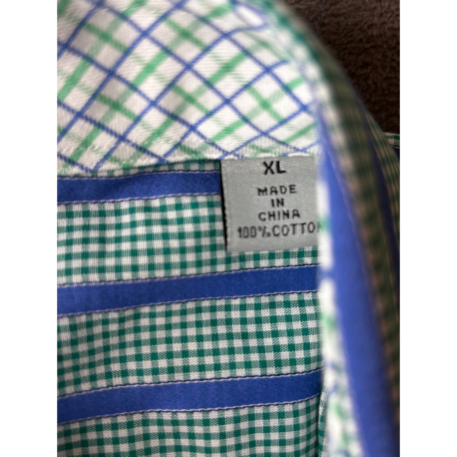 Jack Stone by Thomas Dean XL Green Blue Striped Checkered Button Down Shirt